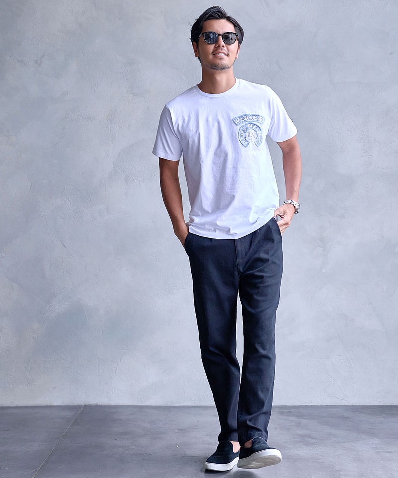 さりげなく個性を演出できる、大人のためのデザインTシャツです。