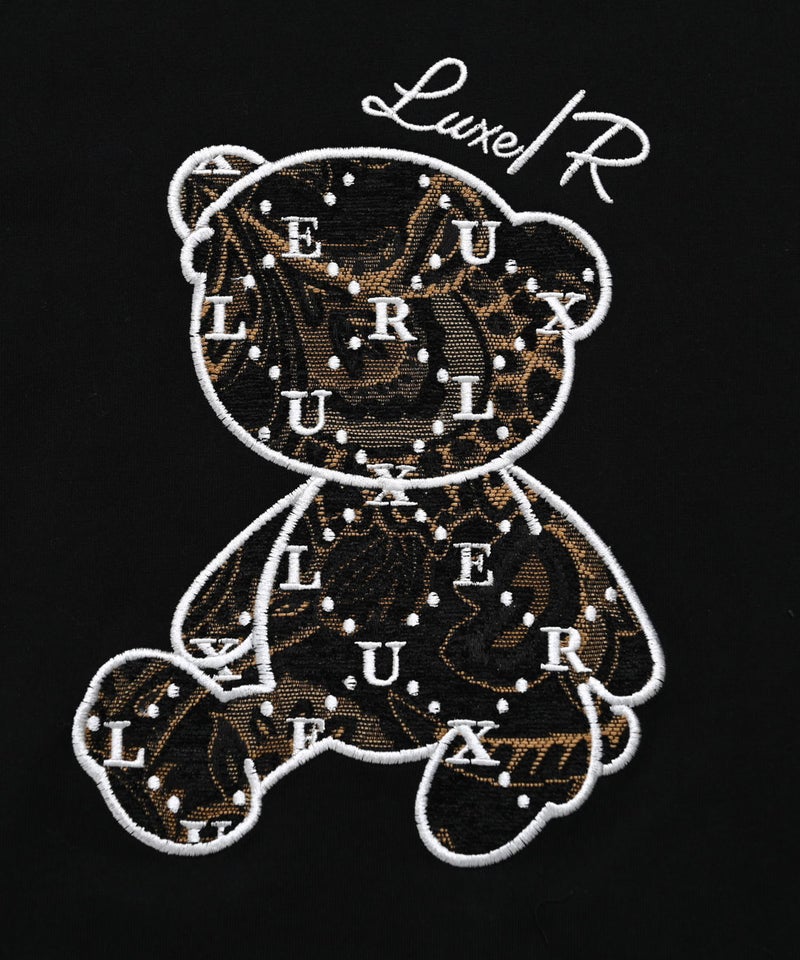 フロントにはペイズリー柄を落とし込んだベアモチーフを大胆に配置。
