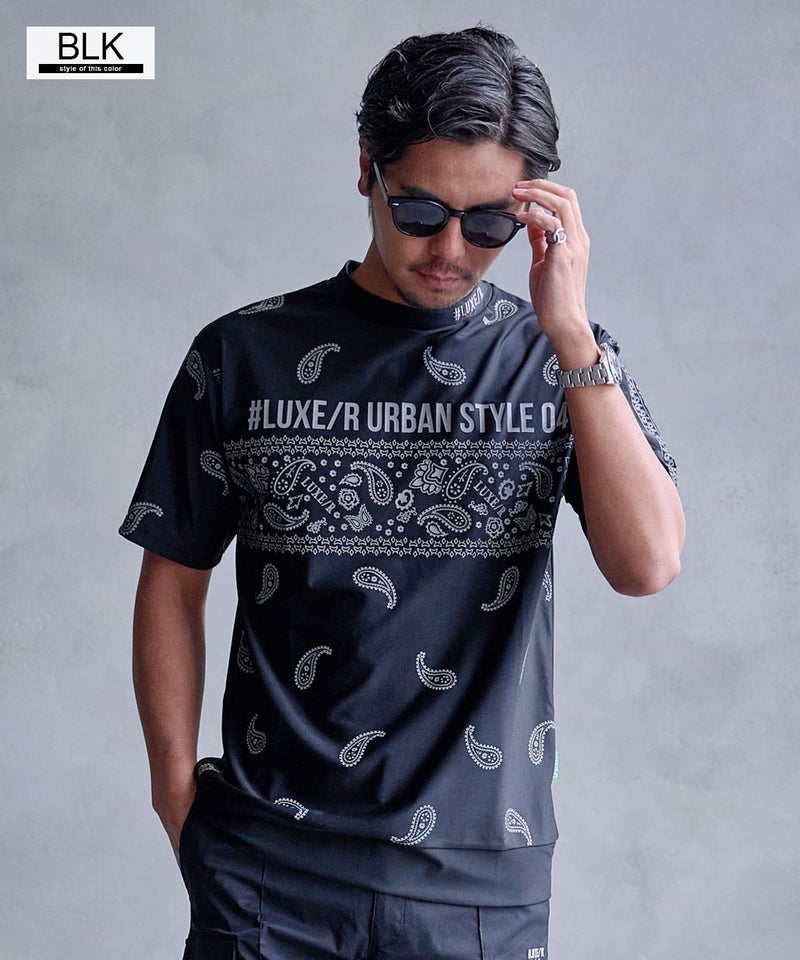 ペイズリー柄を大胆に落とし込んだデザインが目を惹く半袖Tシャツです。