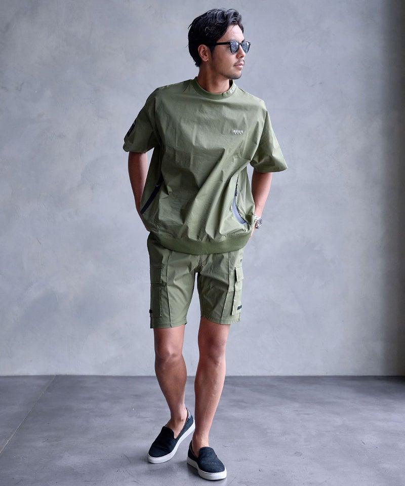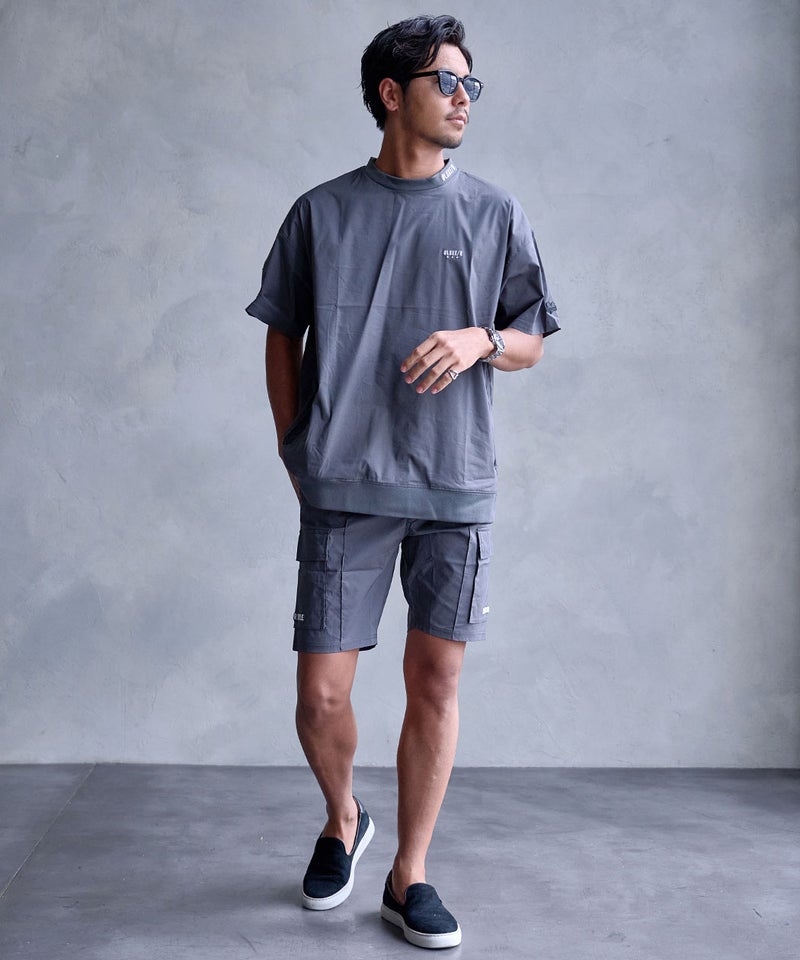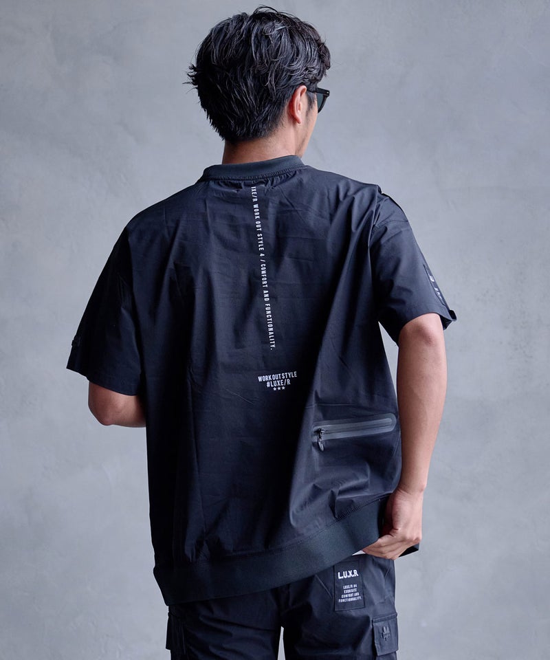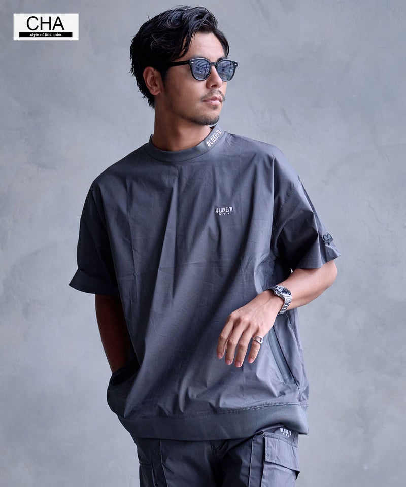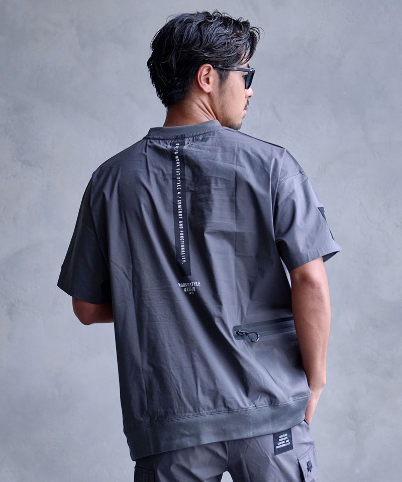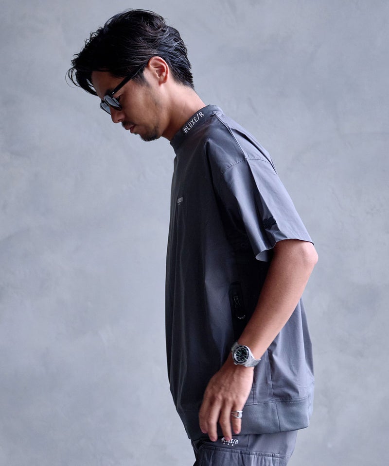 機能性とデザイン性を兼ね備えた、今のトレンドをしっかり押さえたナイロン素材の半袖Tシャツ。