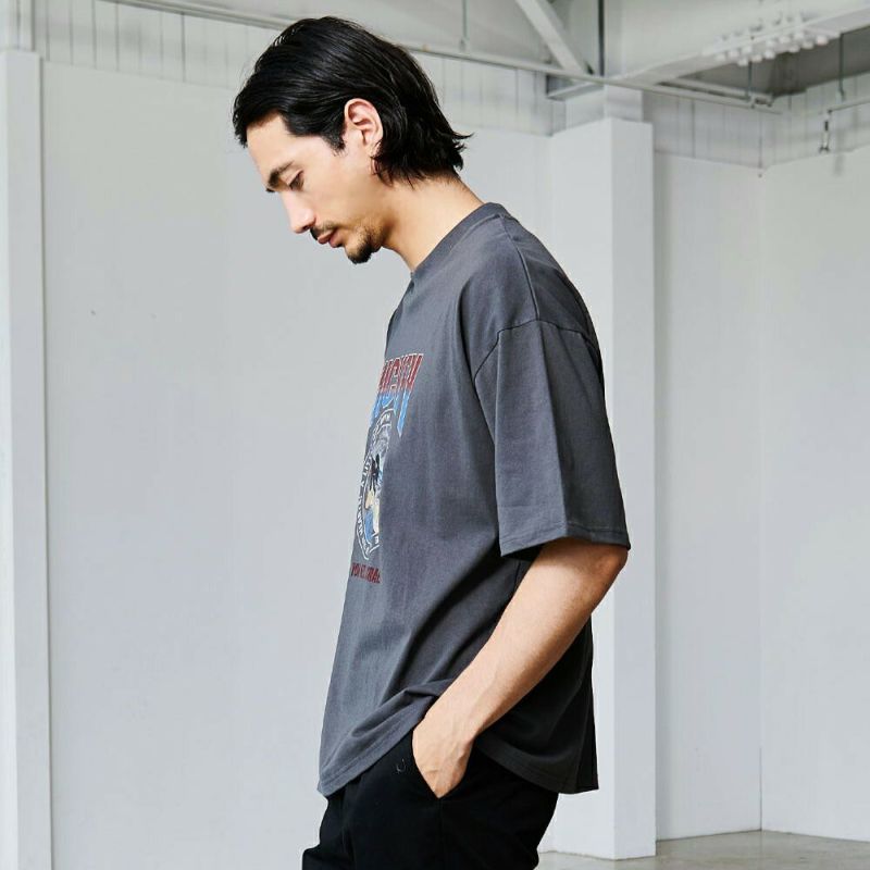 ピグメント風加工やかすれたプリントを施すことで、こなれ感のある風合いを再現しました。