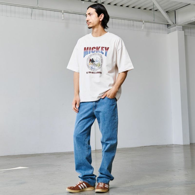 ヴィンテージライクな風合いが魅力の味わい深いスノーウォッシュ加工を施したTシャツ。厚みのある良質なコットン素材を使用し、着るたびに肌に馴染む優しい着用感を楽しめます。 DISNEY(ディズニー)ピグメント風ROCK 半袖TEE/全4色