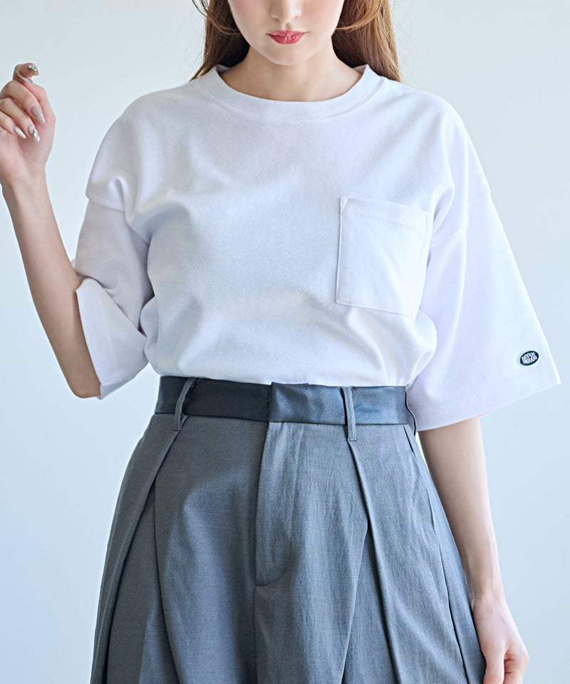 ポケットにはさりげないブランドアピールがあり、シンプルながらもスタイリッシュさを感じさせる一枚。