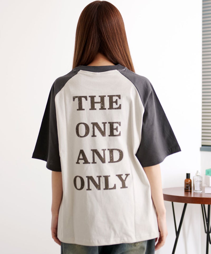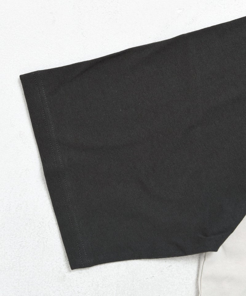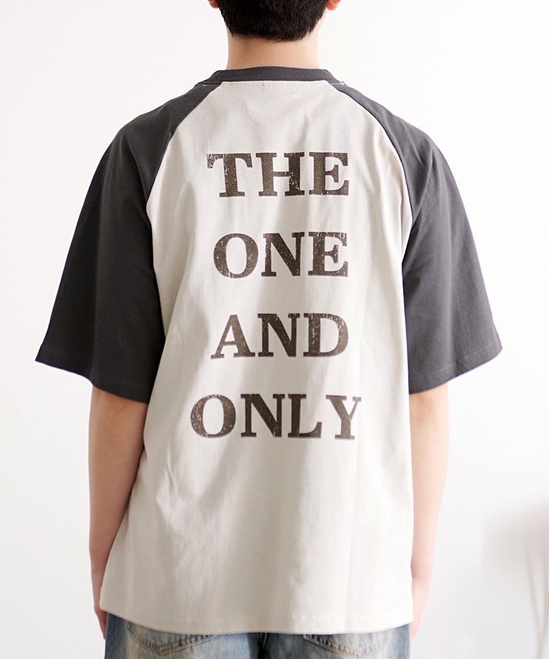 肩の切り替えが特徴のラグランスリーブ仕様で、リラックス感のあるシルエットに仕上げた一枚。