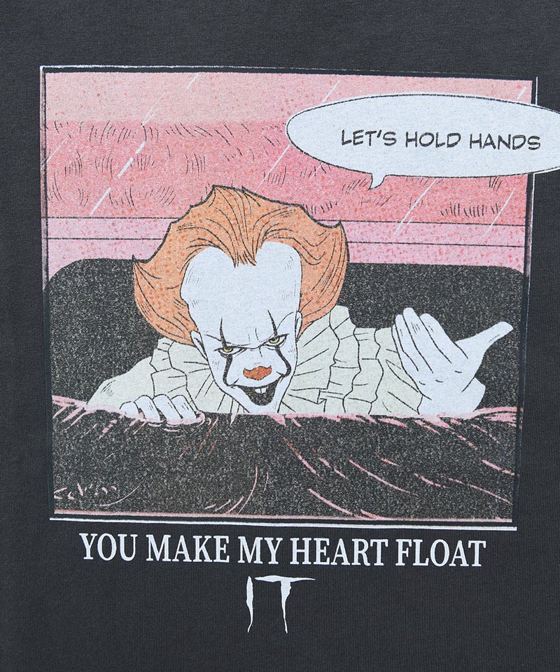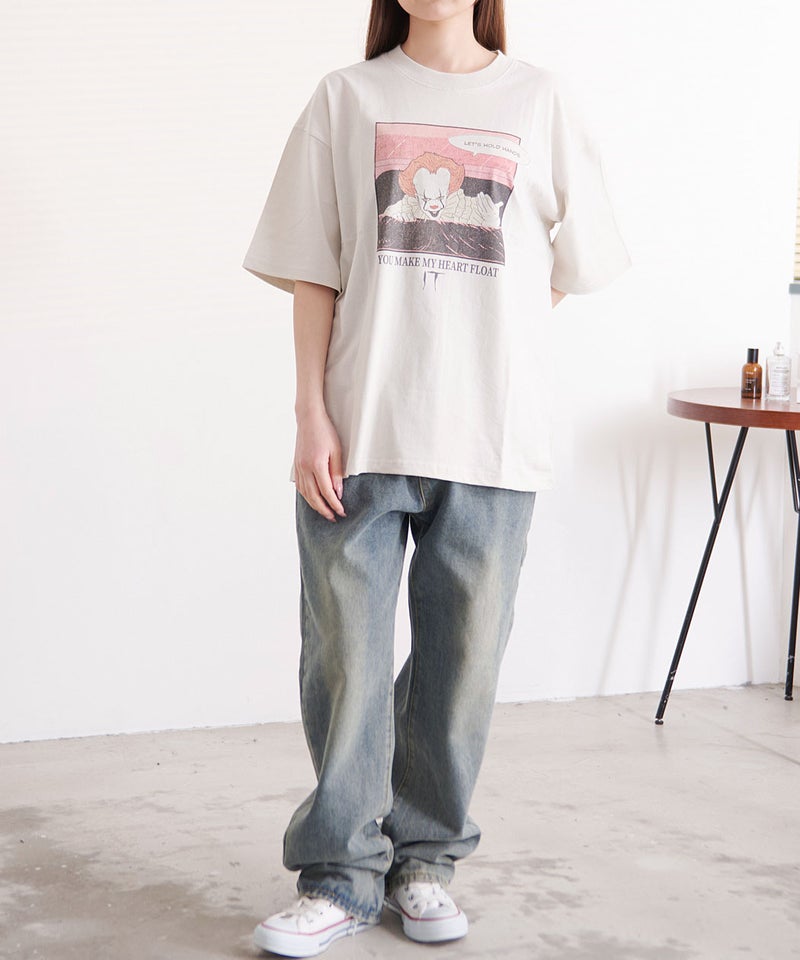 ヴィンテージ感のある風合いが魅力のユーズドライクな半袖Tシャツ。ホラー映画『IT』に登場する“恐怖の殺人ピエロ”ペニーワイズをモチーフにしたインパクトのあるデザイン。 Bitter select(ビターセレクト)IT USED LIKE 半袖Tシャツ/全4色