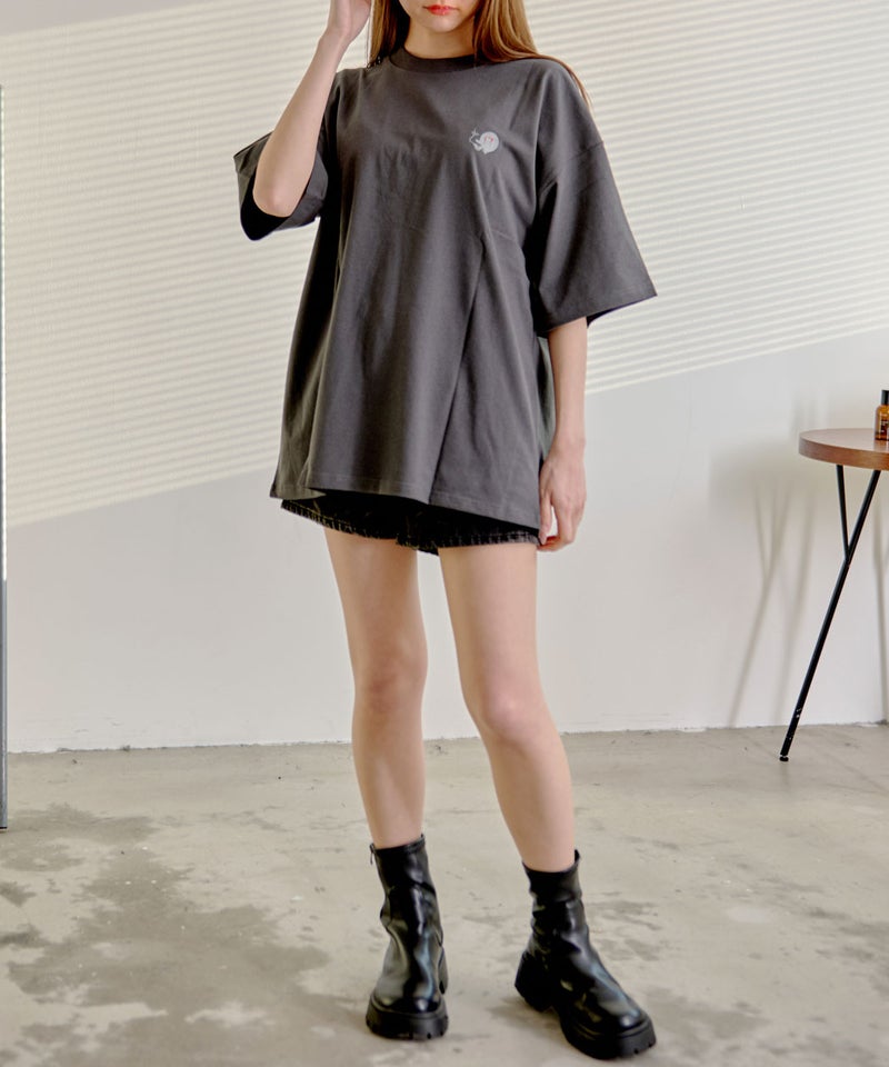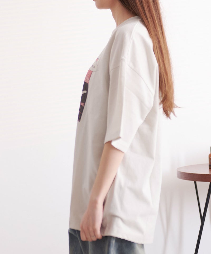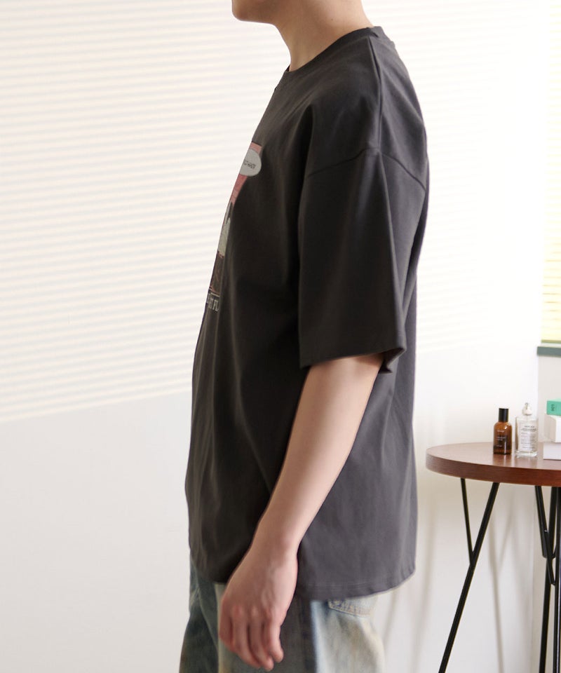 ヴィンテージTシャツのような雰囲気と印象的なグラフィックが絶妙にマッチし、ストリートスタイルや古着テイストのコーディネートにもぴったりの仕上がりです。