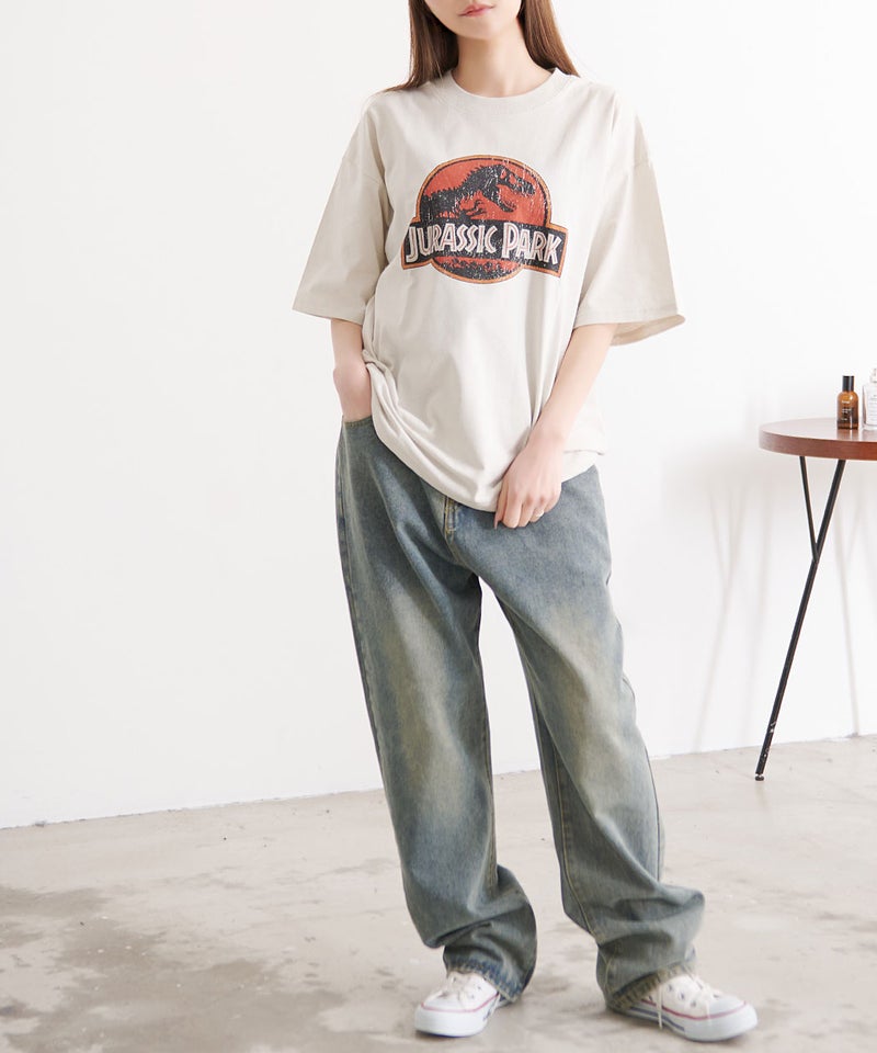 フロントにJURASSIC PARKのロゴが大胆にプリントされた、存在感抜群のTシャツ。