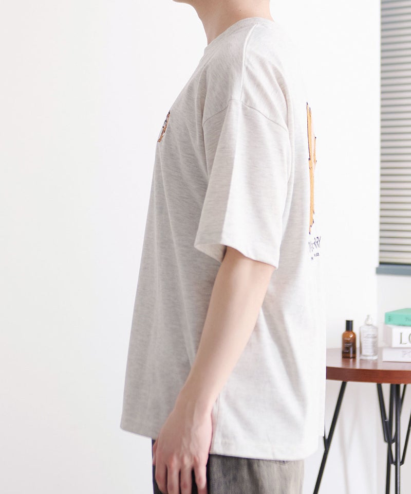 シンプルなTシャツながらも、キャラクターの愛嬌たっぷりな表情と立体的な刺繍がスタイリングに遊び心をプラスしてくれる一枚です。