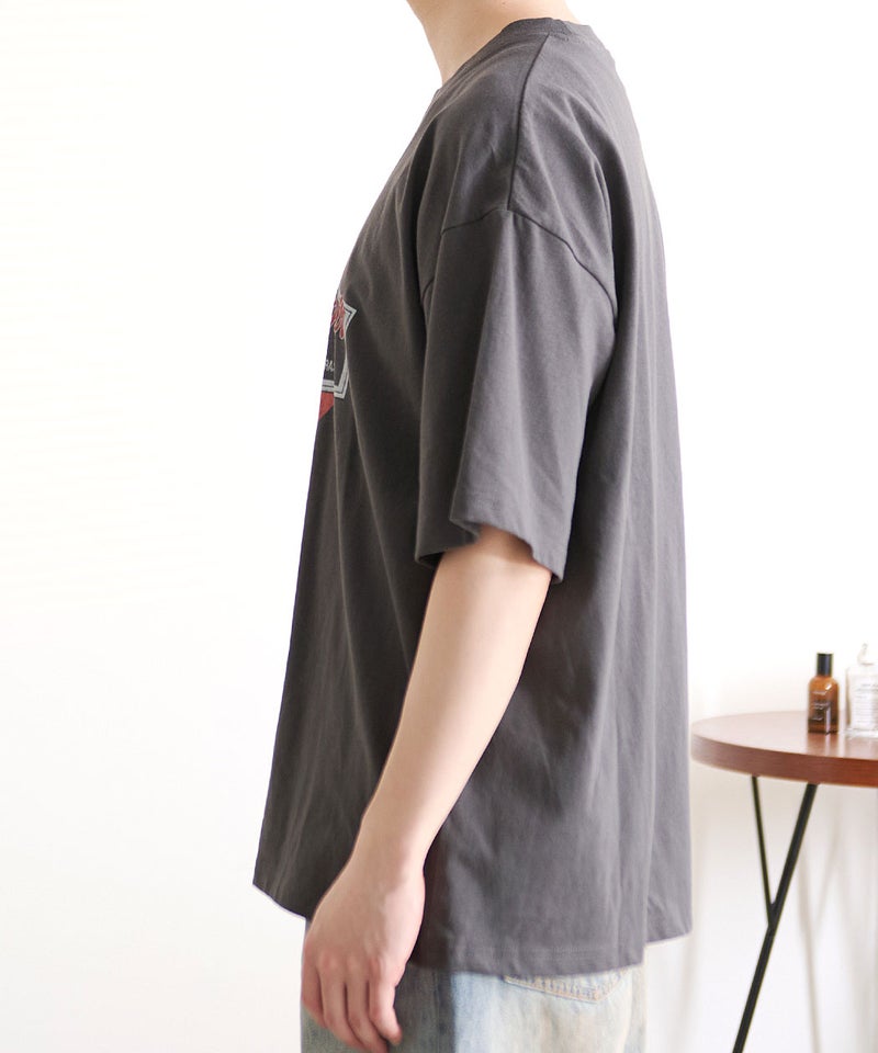 ストリート感のあるグラフィックに、ヴィンテージライクなUSED加工を組み合わせることで、こなれた雰囲気と遊び心を感じさせるデザインに。