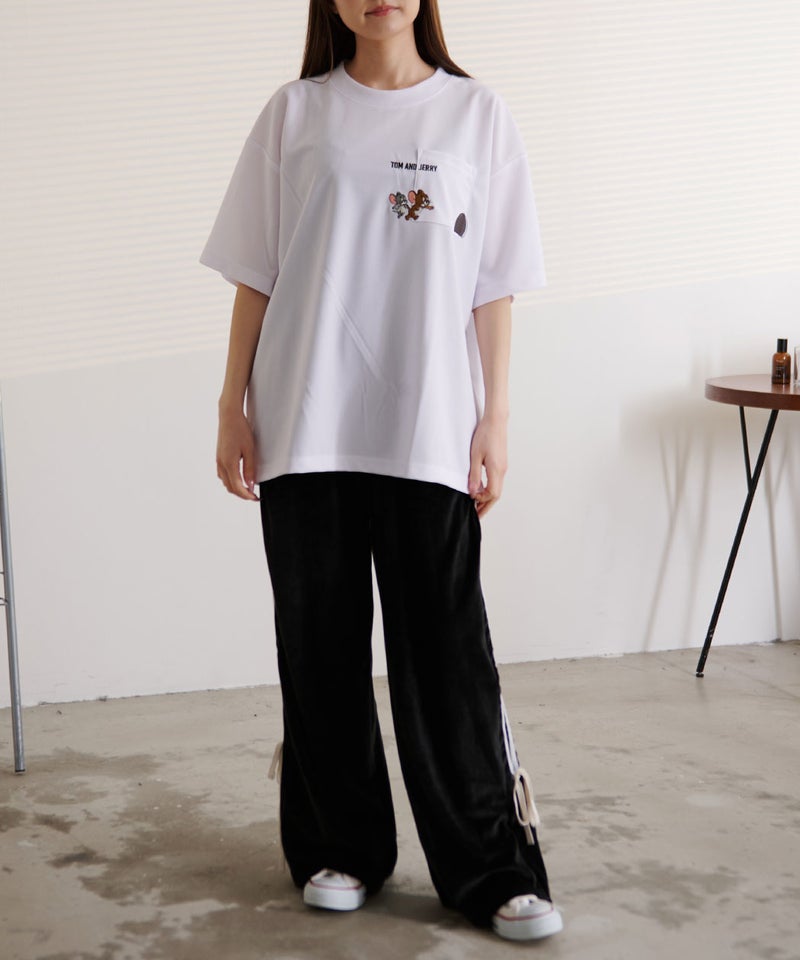 胸元ポケットにデザインされたトムとジェリーの刺繍が目を惹く、遊び心たっぷりの一着です。
