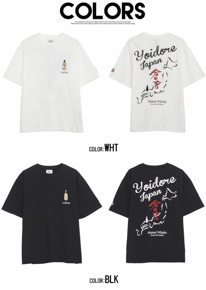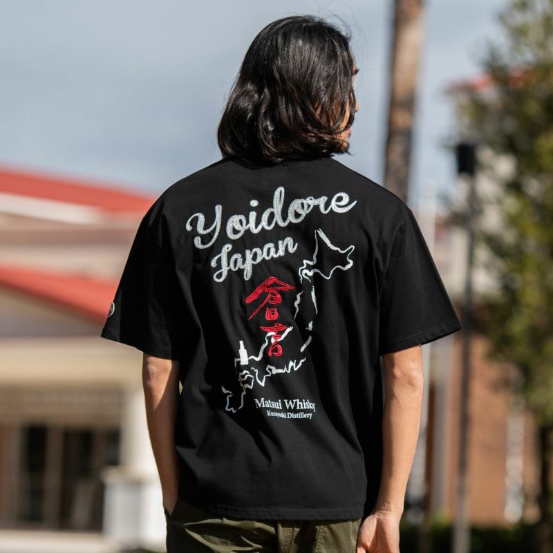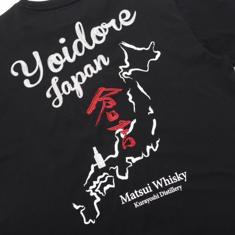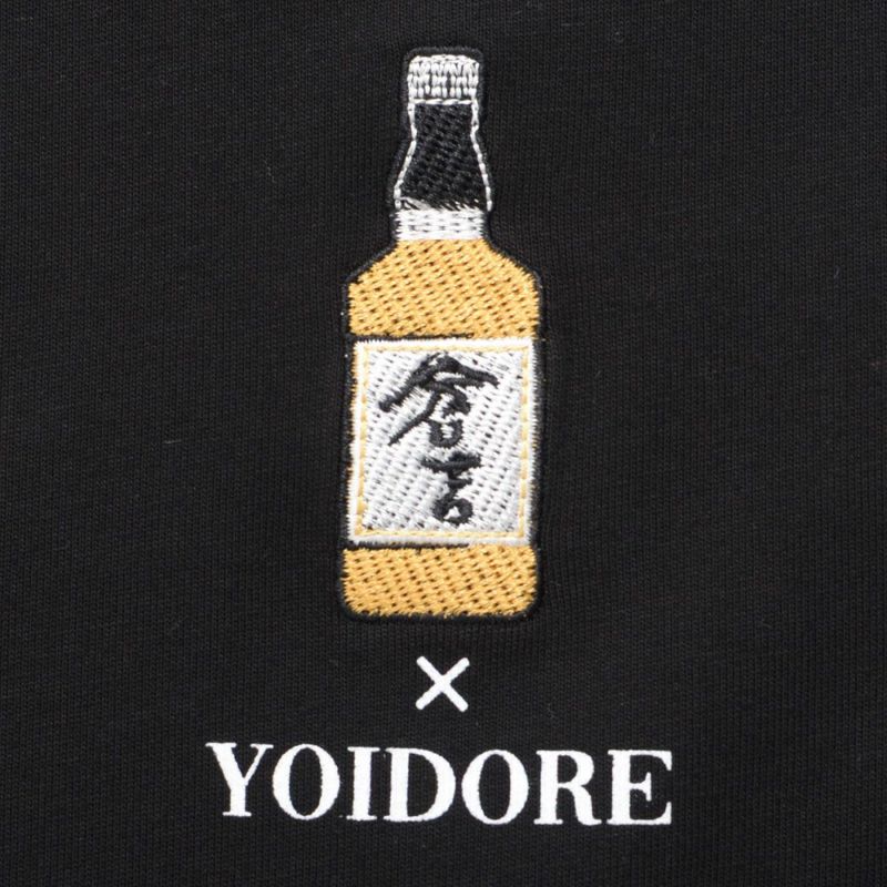 フロントには胸元に控えめなウイスキーボトル刺繍と「YOIDORE」ロゴをあしらい、上品なアクセントをプラス。