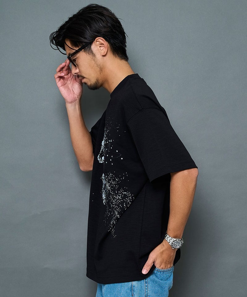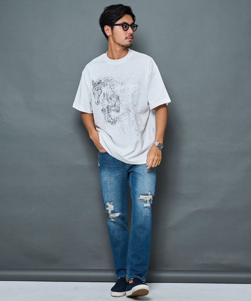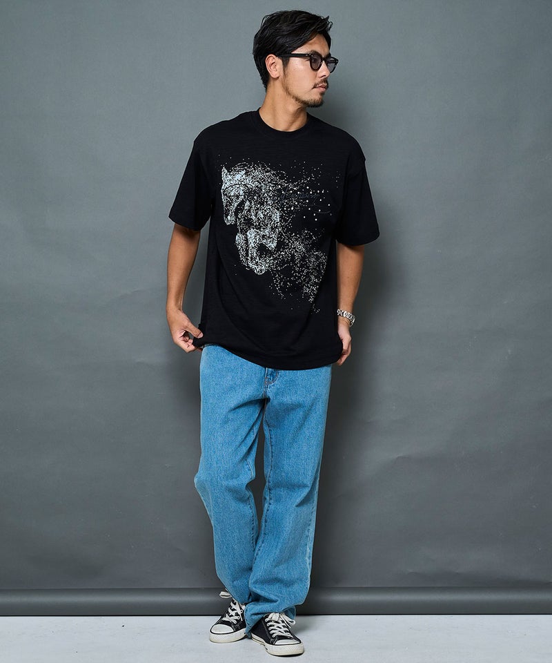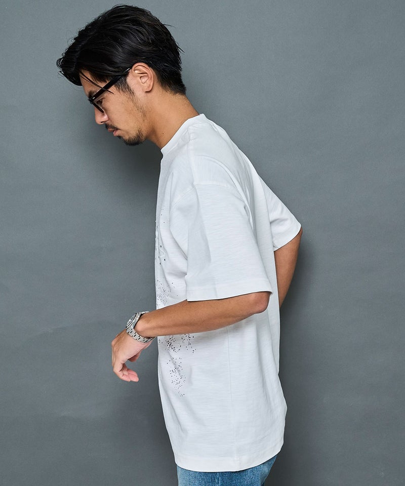 繊細なドットタッチで表現されたアート調プリントが、シンプルなTシャツに洗練された個性をプラスします。