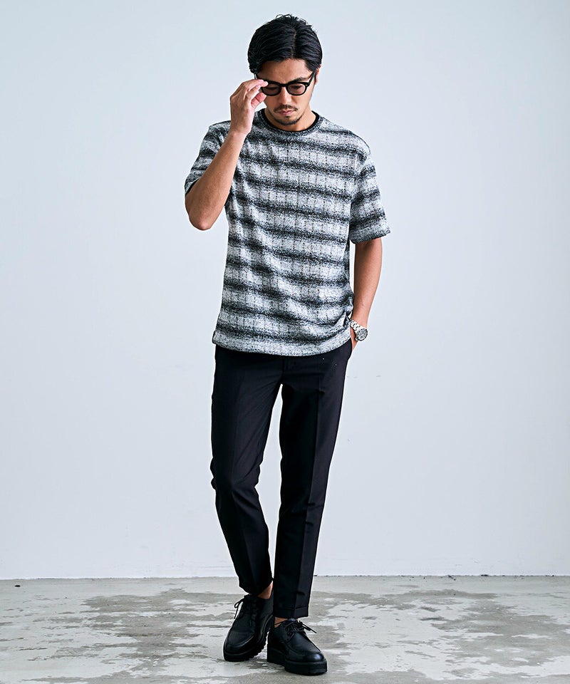 デニムやワイドパンツ、スラックスなど幅広いボトムスと好相性。