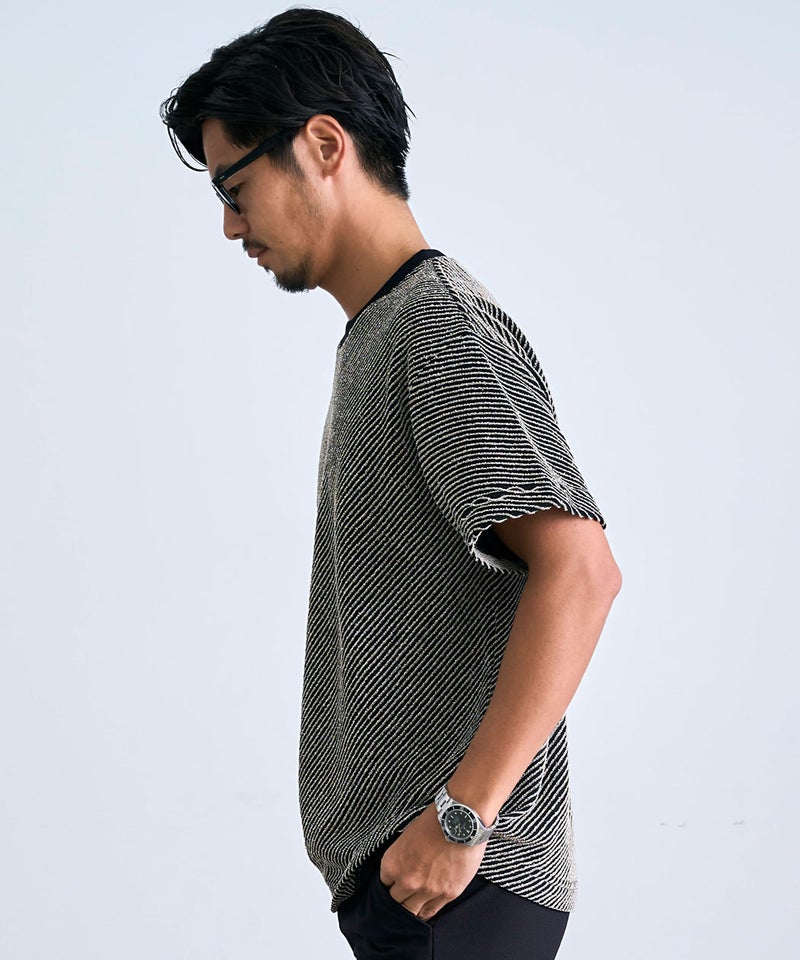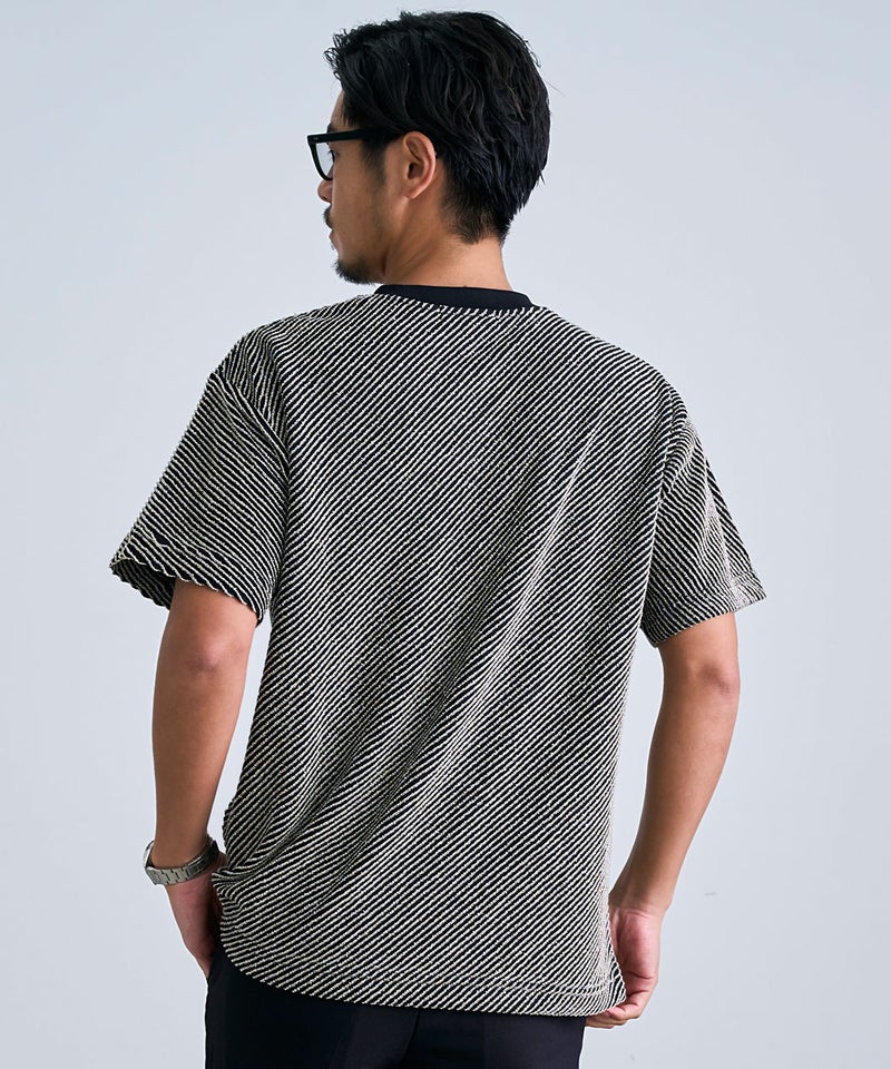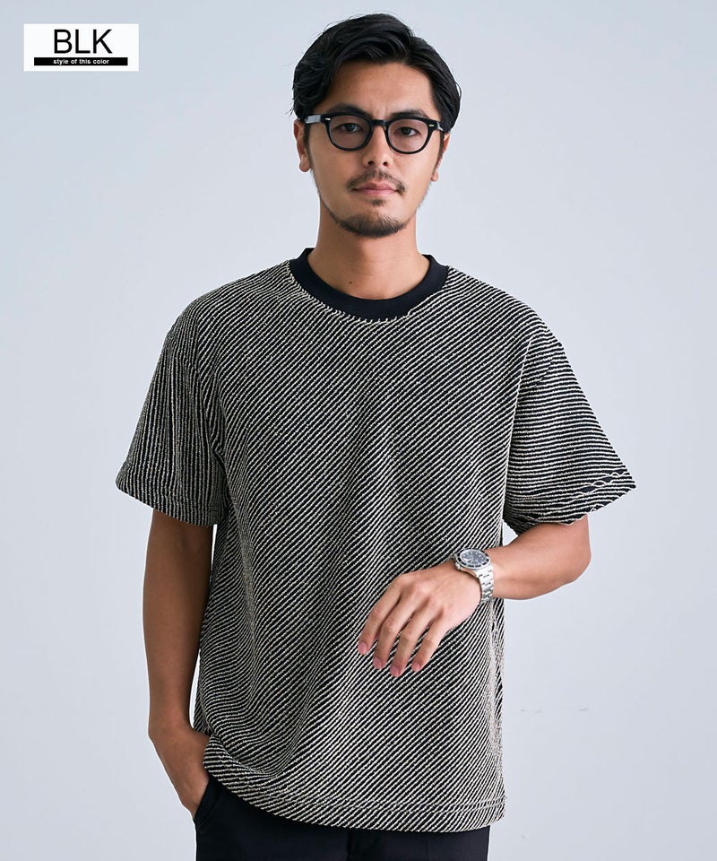 斜めに走る立体的なストライプ柄が特徴で、無地とは一線を画す表情豊かな仕上がり。