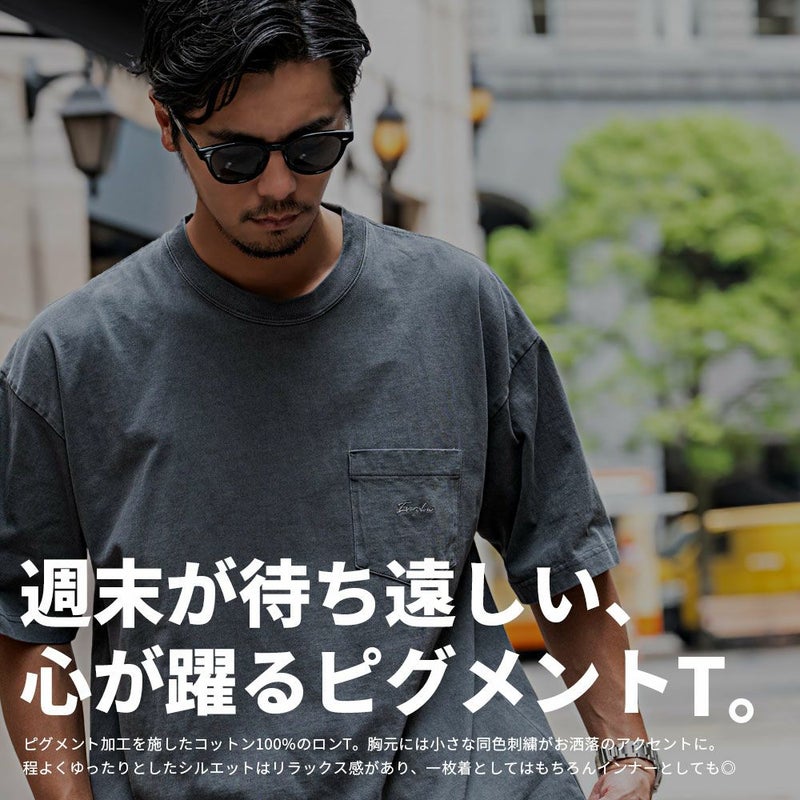 ピグメント加工を施したコットン100%のロンT。