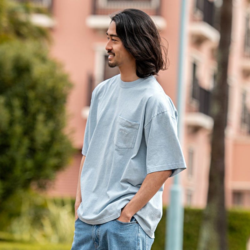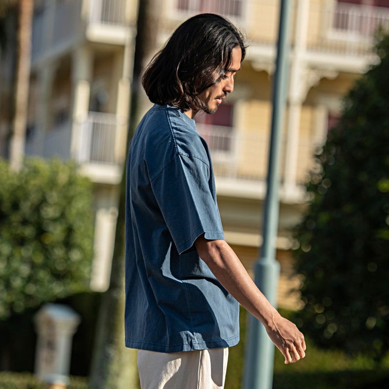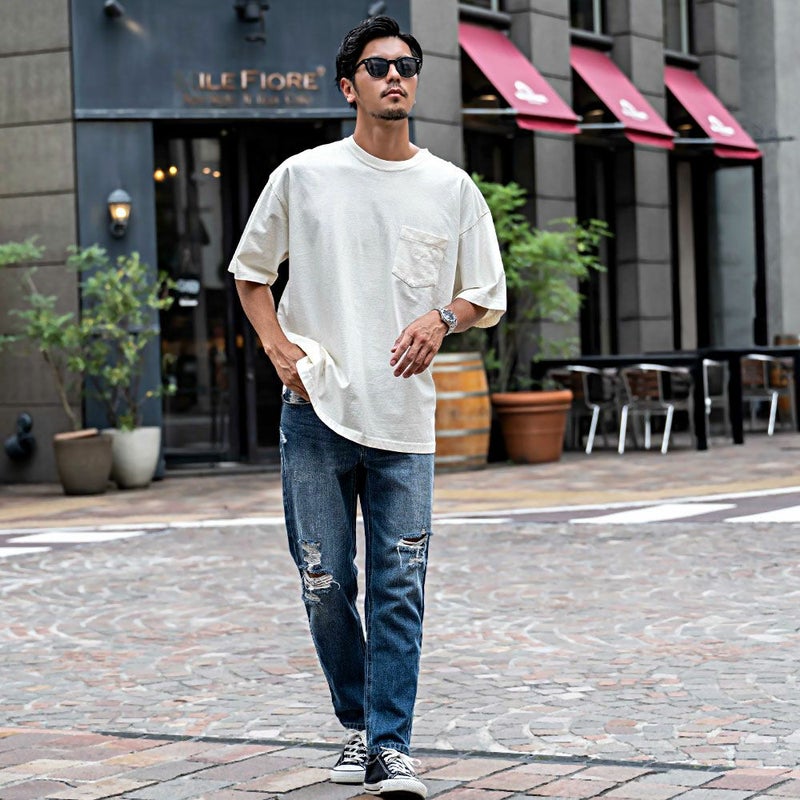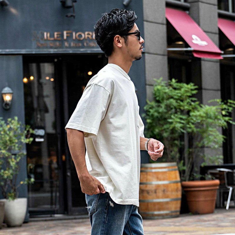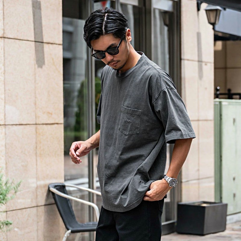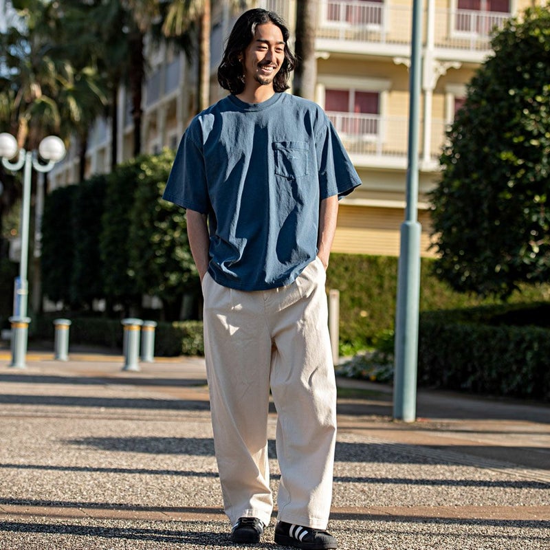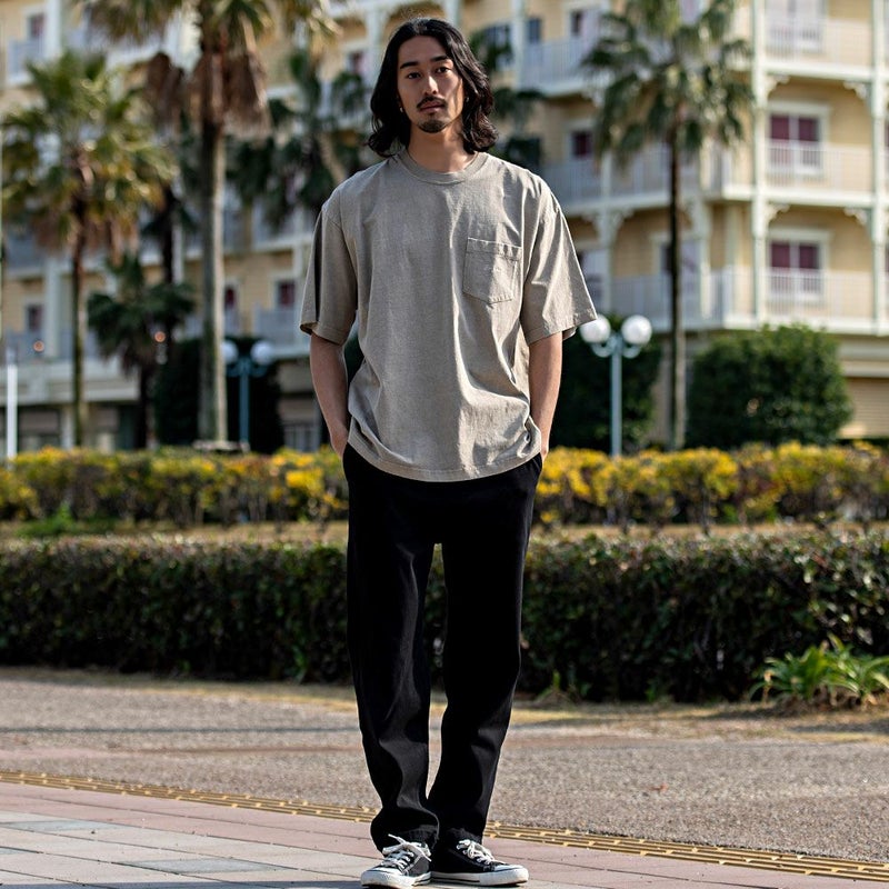 ピグメント加工してレトロテイストな風合いになっているので古着ミックスにも合わせやすい。
