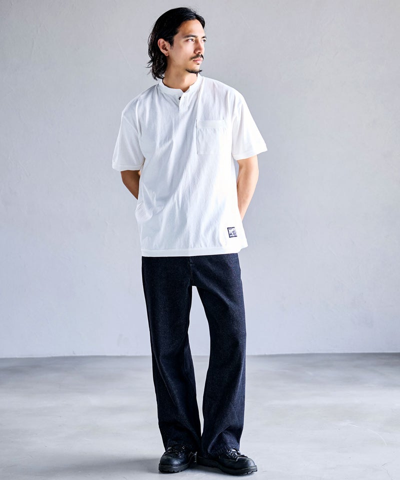 首元は1ボタンのヘンリーネック仕様を採用し、シンプルな中にもさりげない個性をプラス。