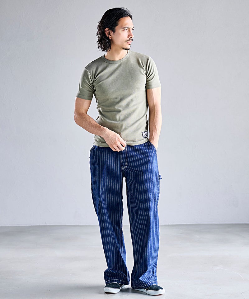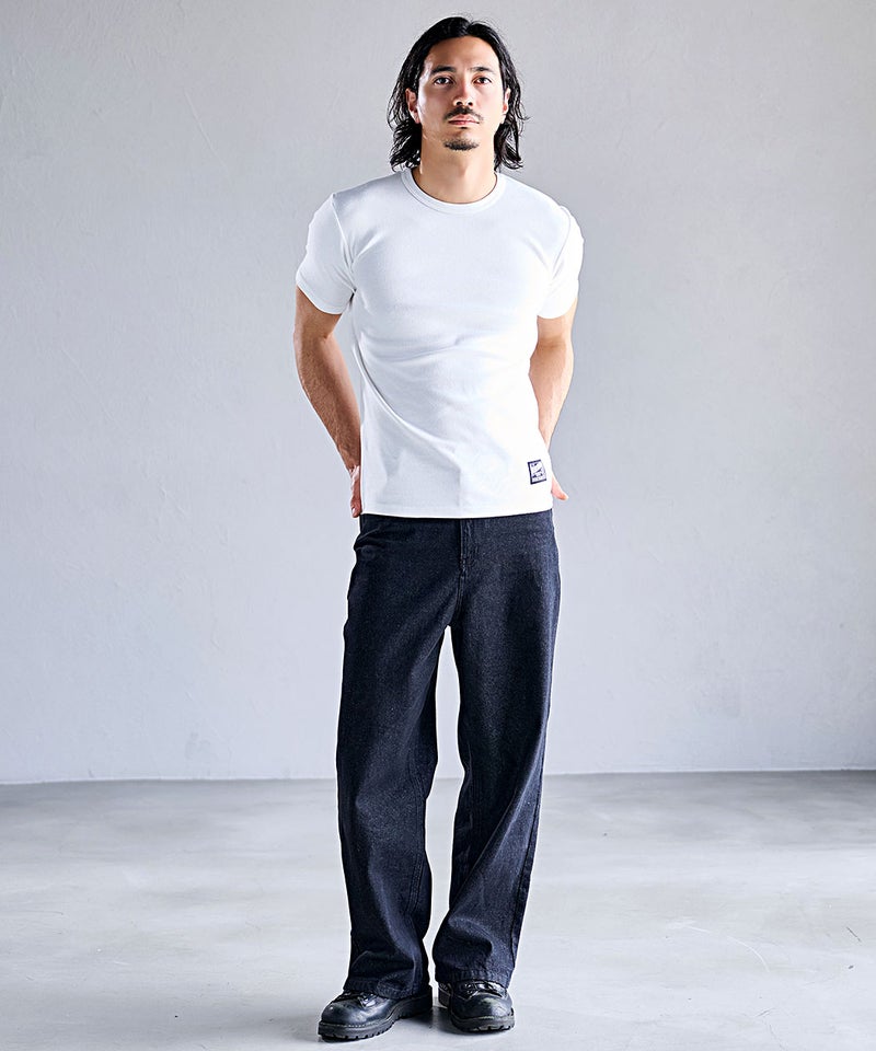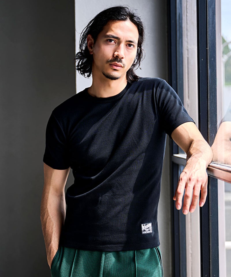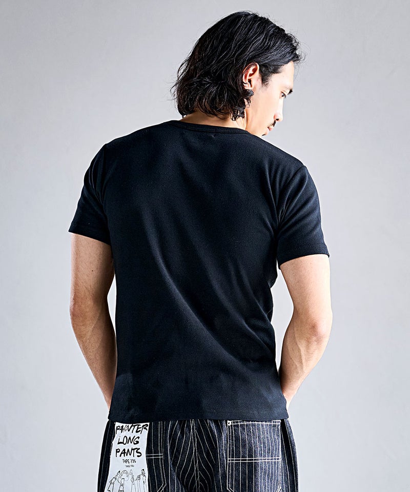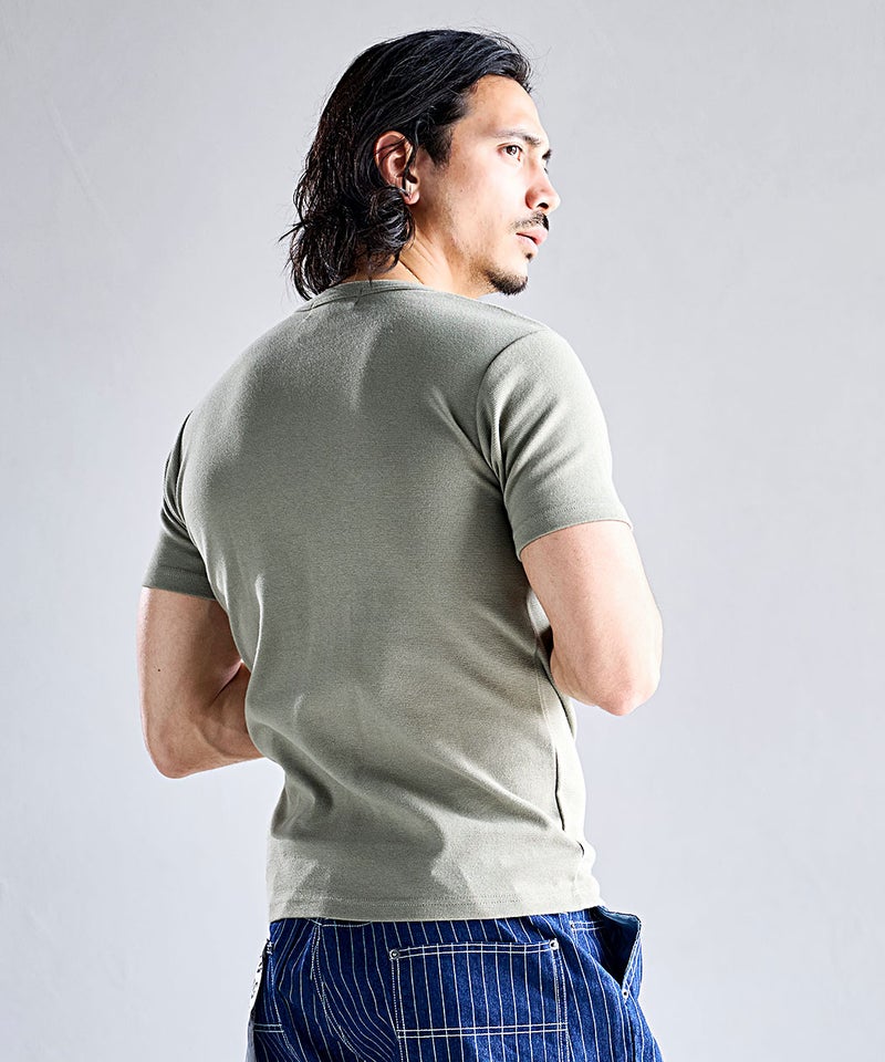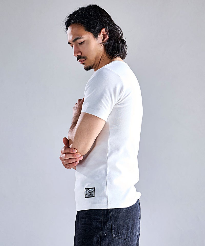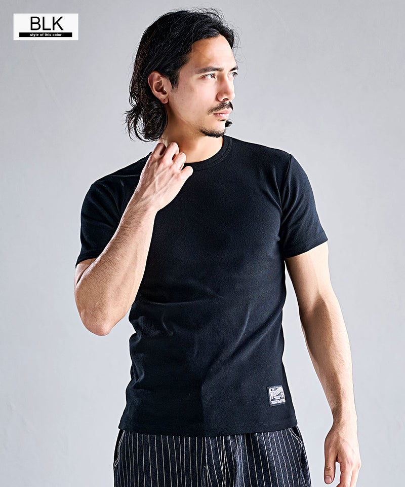 高い伸縮性と優れた復元力(戻る力)を持つスパンフライス素材を使用した別注Tシャツ。