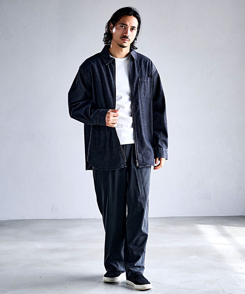 シンプルなデザインで、デニムやスラックスなど様々なボトムスと好相性。