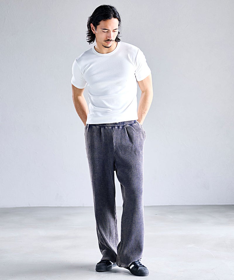テレコ素材に比べて凹凸が少なく、滑らかでフラットな表情。