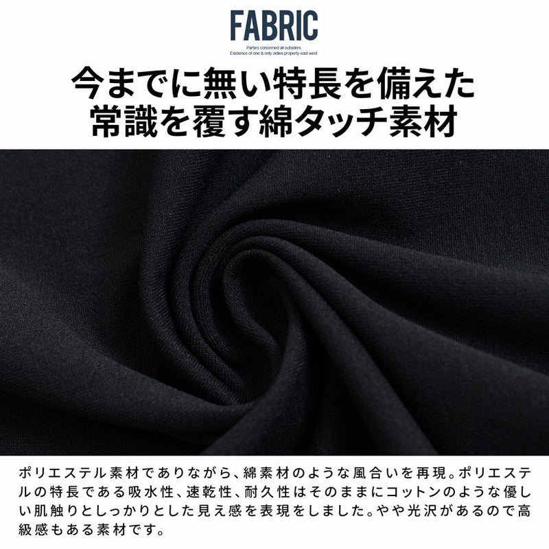 ポリエステルの特長である吸水性、速乾性、耐久性はそのままにコットンのような優しい肌触りの生地感としっかりとした見え感を表現をしました。