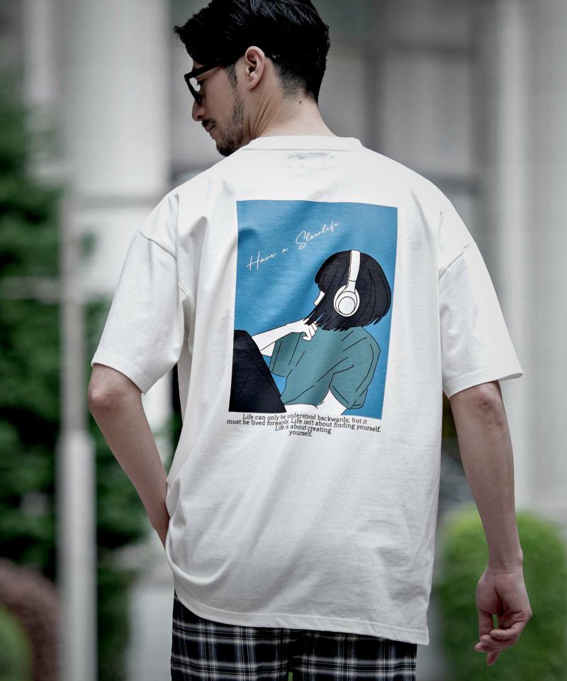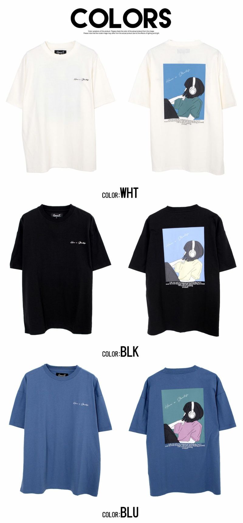 暑い日でも涼しくおしゃれに!シンプルで着心地抜群の半袖Tシャツ。 【SALE/セール】CavariA(キャバリア)バックプリントイラストガール半袖Tシャツ/全3色