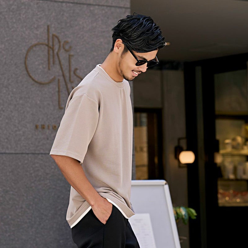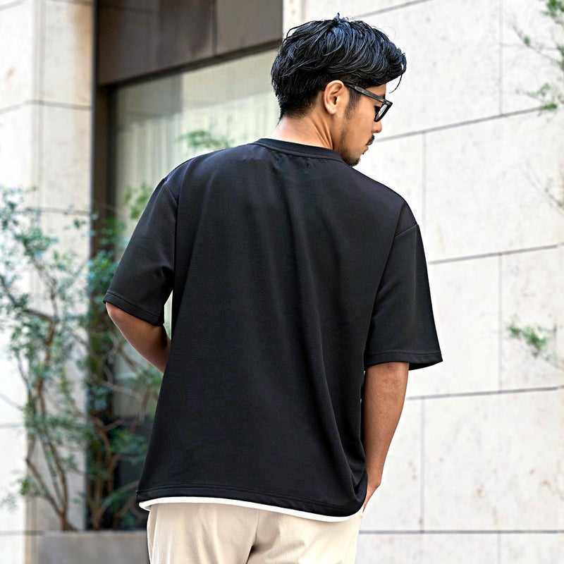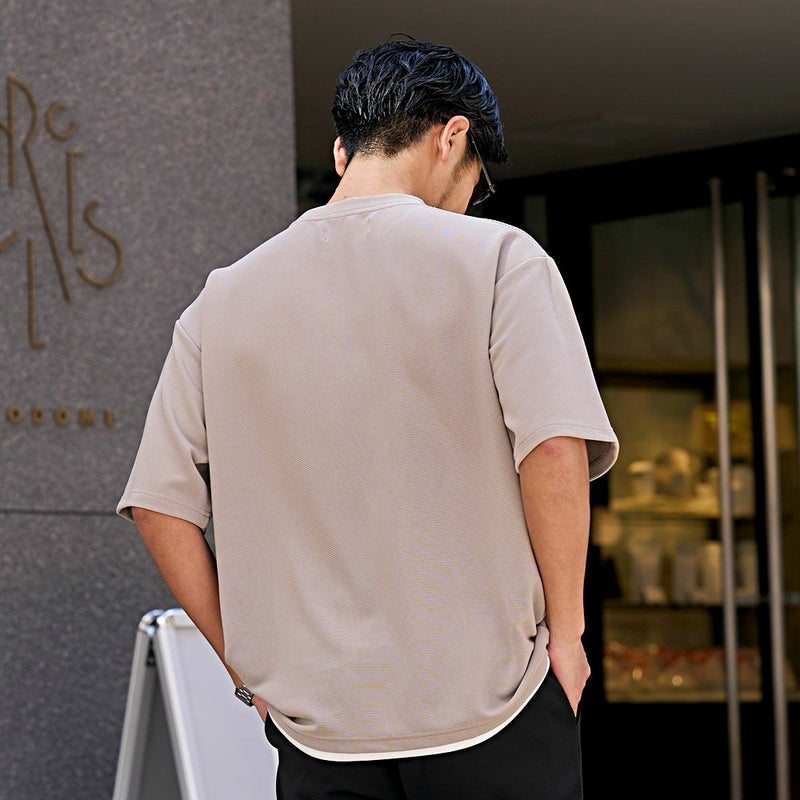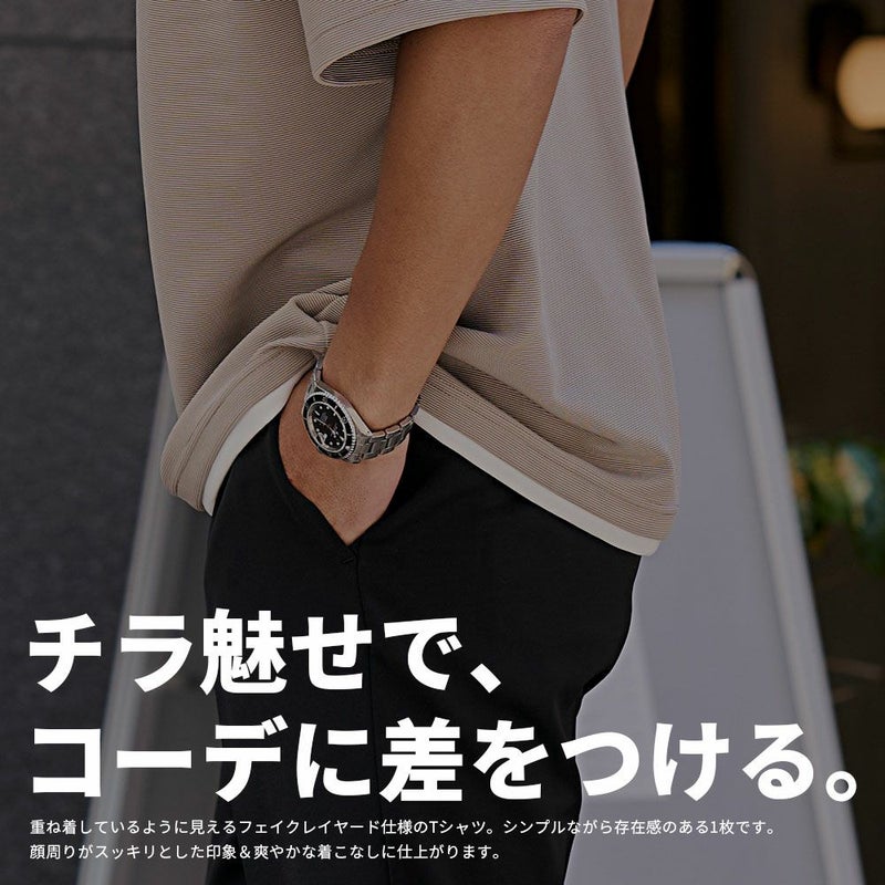 重ね着しているように見えるフェイクレイヤード仕様のTシャツ。