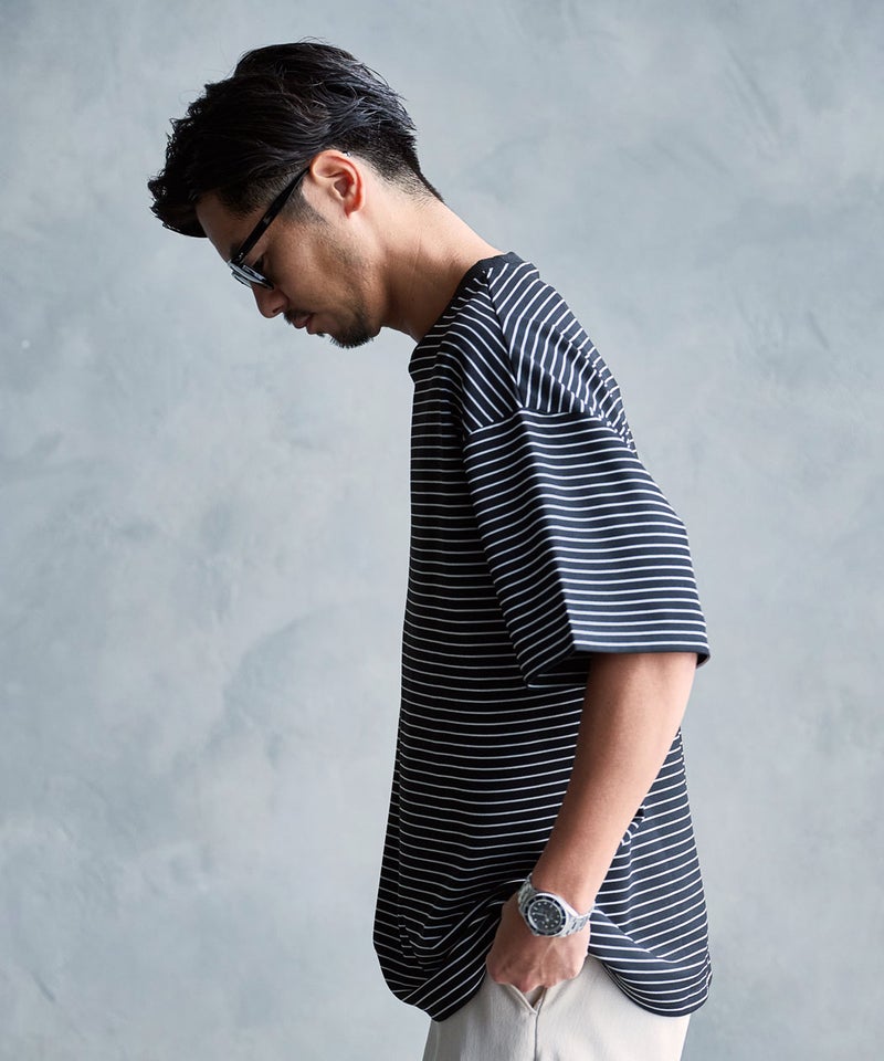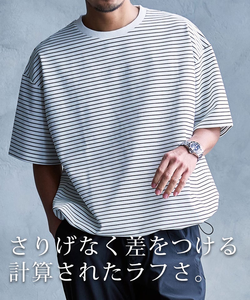 一枚でコーデに差をつける、ボーダースピンドル半袖Tシャツです。