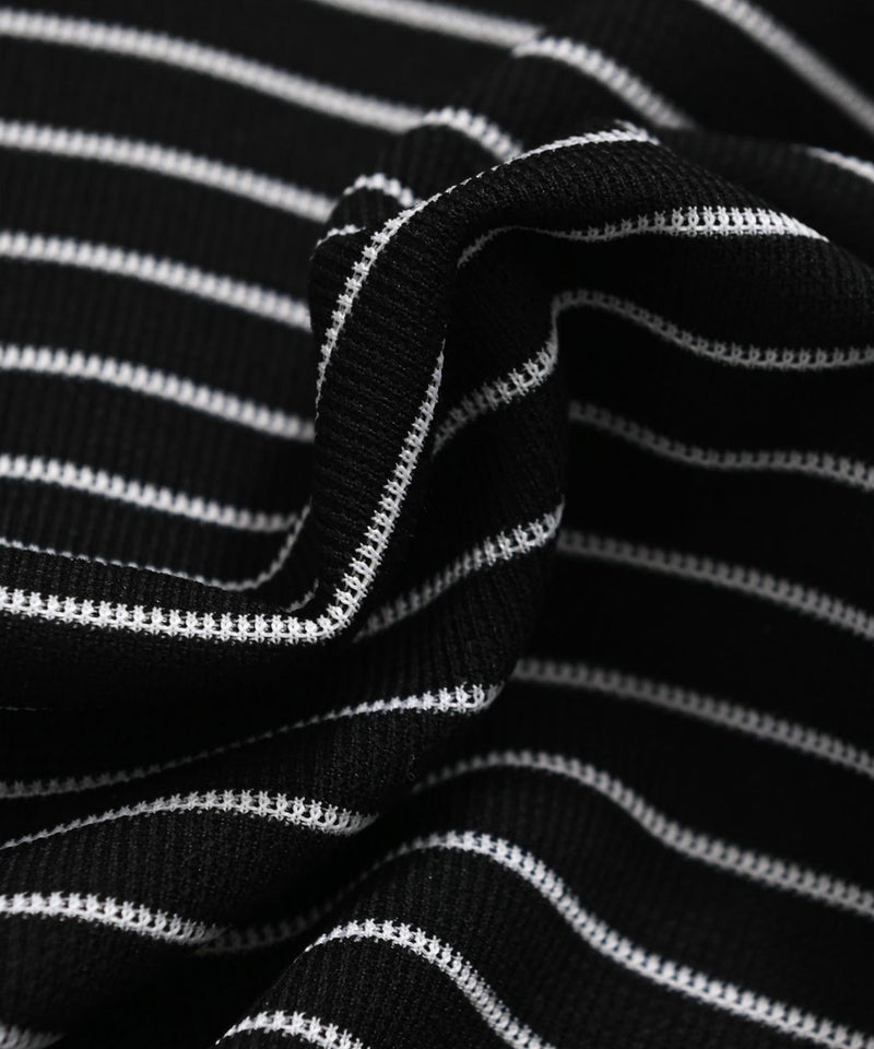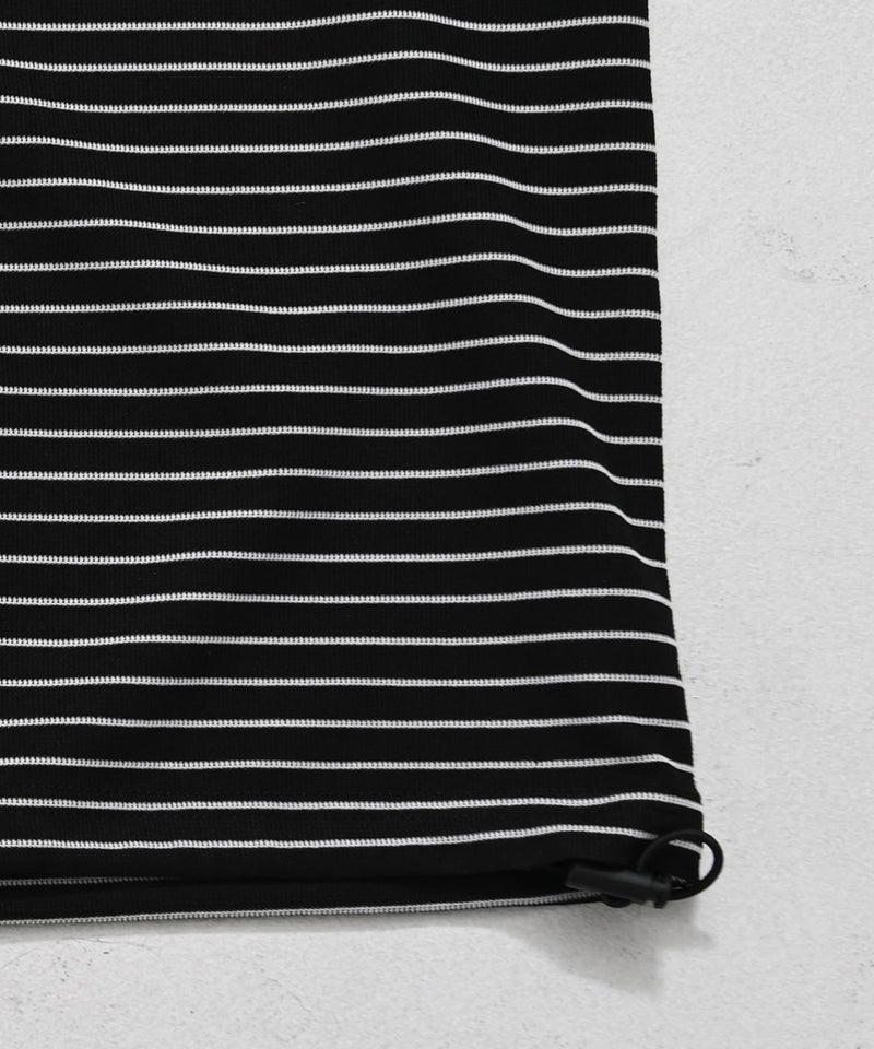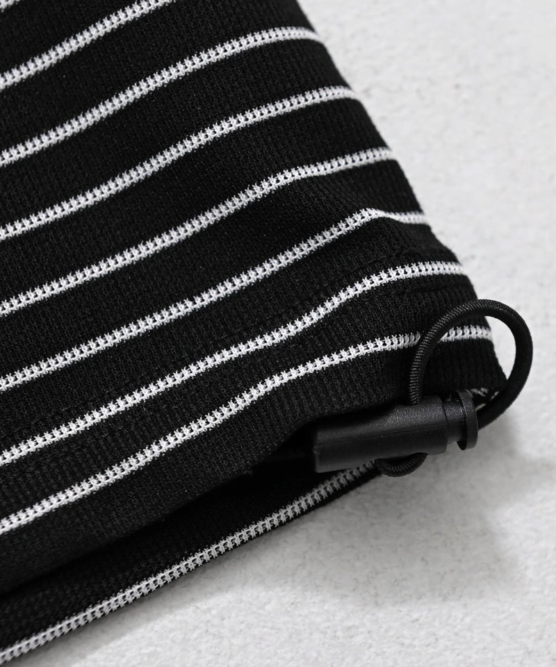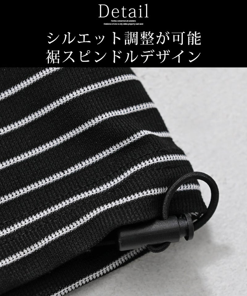 ベーシックなボーダー柄に、裾のスピンドルデザインを組み合わせた他にはない一着。