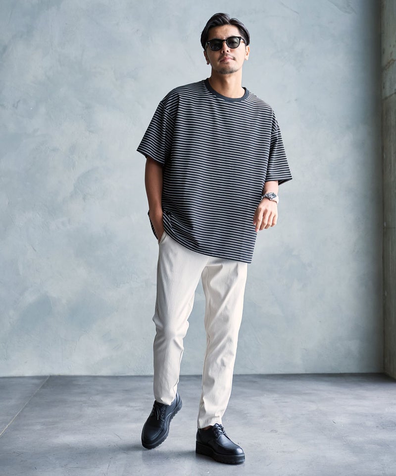 デニムやスラックス、ショーツなど幅広いアイテムと相性が良く、