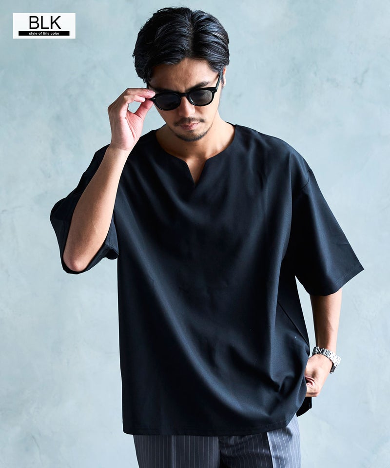 通常のクルーネックとは一味違う程よい抜け感をプラスし、顔まわりをすっきりと見せてくれるのがポイントです。