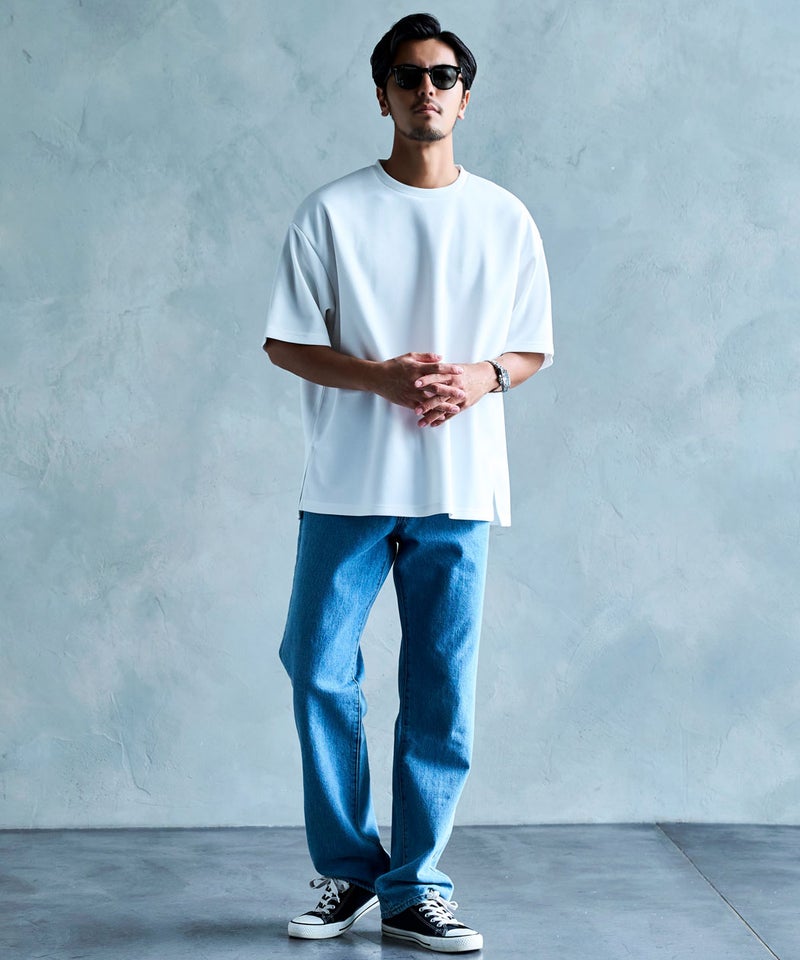 身体のラインを拾いにくく、リラックス感がありながらも、だらしなく見えないバランスに仕上げています。