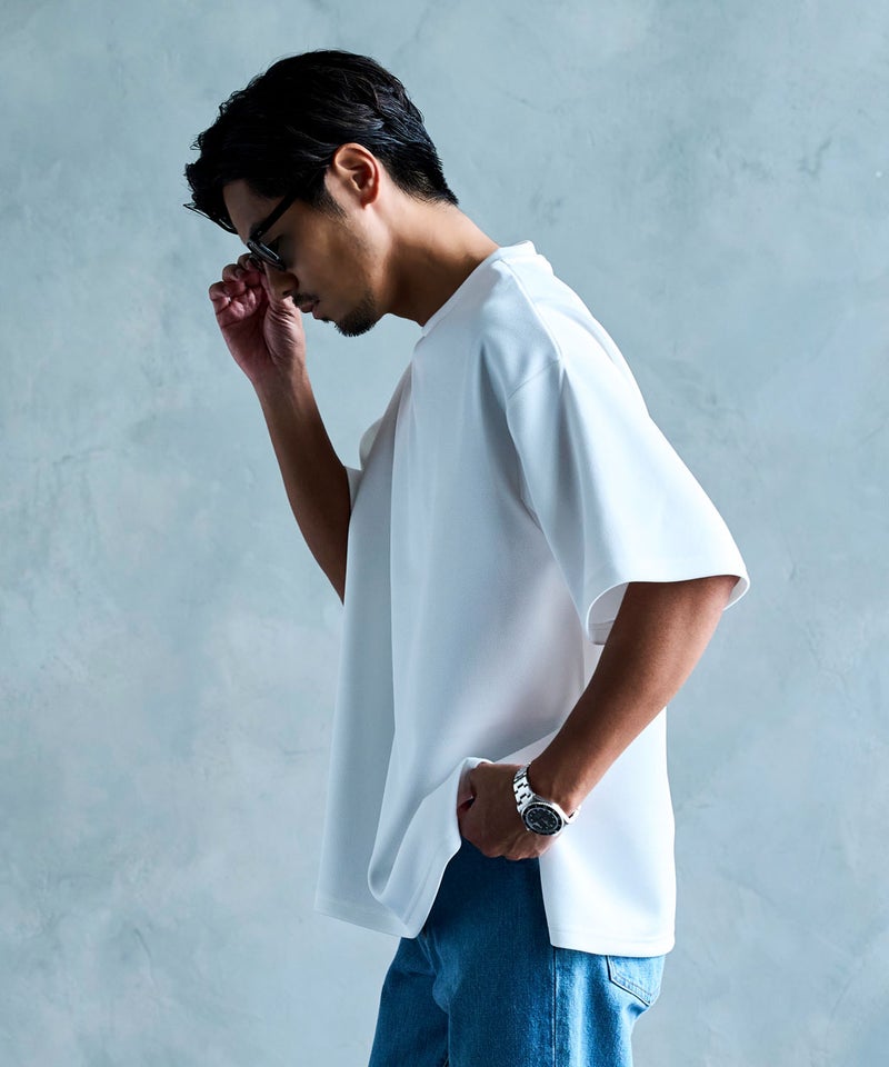 装飾を抑えたミニマルなデザインながら、肩を落としたビッグシルエットとサイドスリットがこなれた雰囲気を演出し、日常使いから休日のお出かけまで幅広く活躍する一着に仕上がっています。