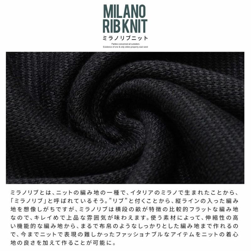 ニット特有の伸びやヨレが起こりにくく、そのままの形状を保てるミラノリブニットを使用したニット。