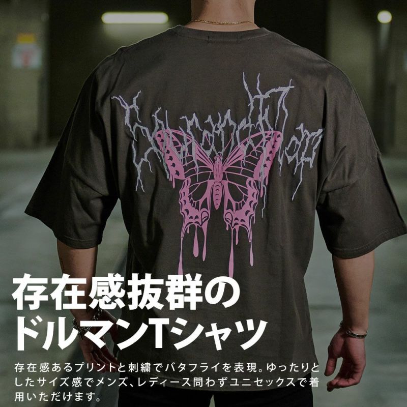 フロント、バックに刺繍とプリントでバタフライを施した個性的なデザイン。