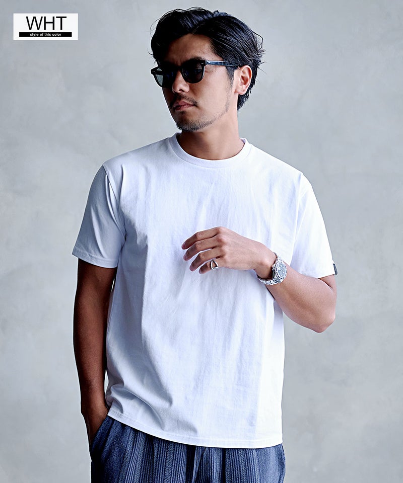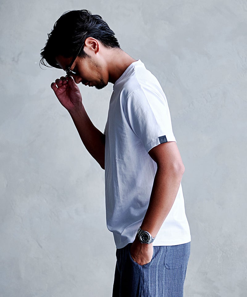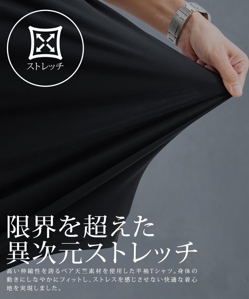 高い伸縮性を誇るベア天竺素材を使用した半袖Tシャツ。