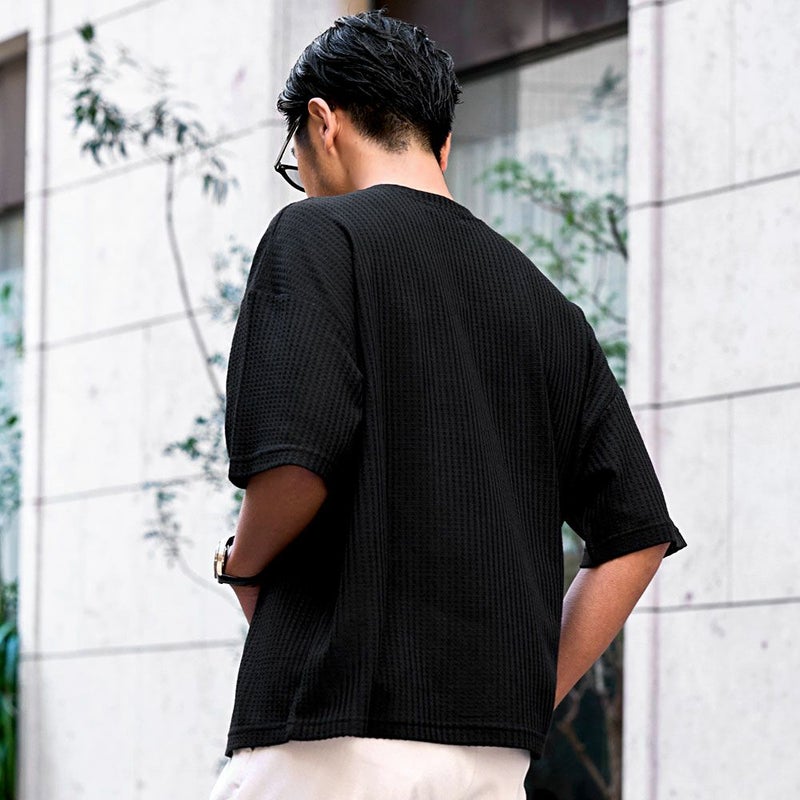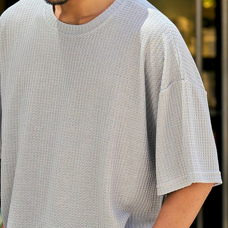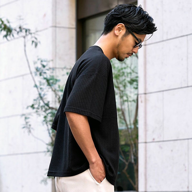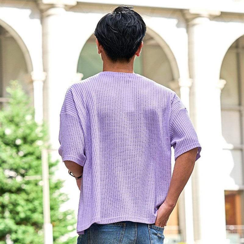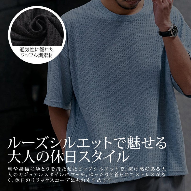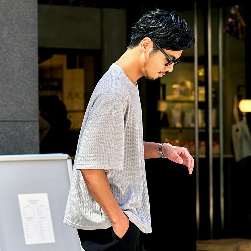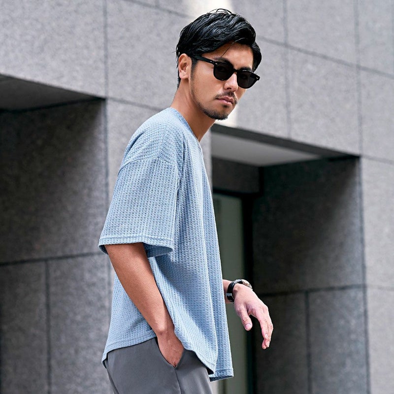 凹凸感のあるワッフル調の生地を使用し、肌に触れる面積が少ないためべたつかず、さらりとした着心地が魅力。