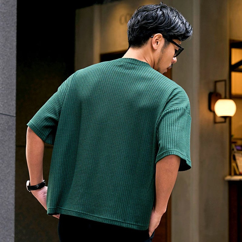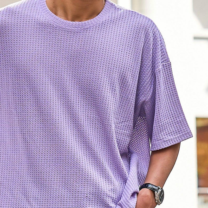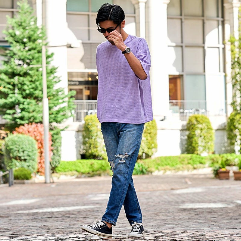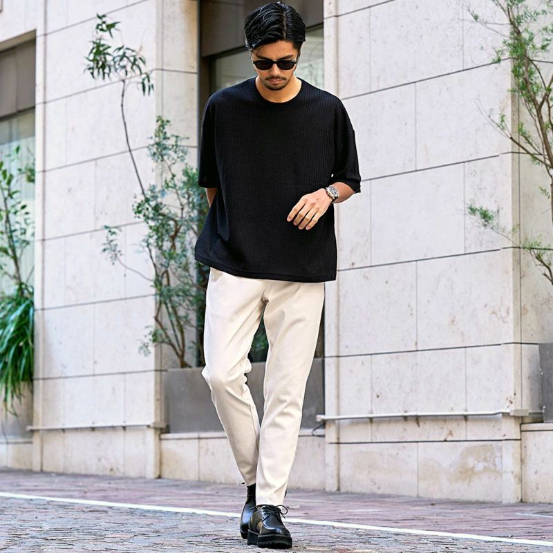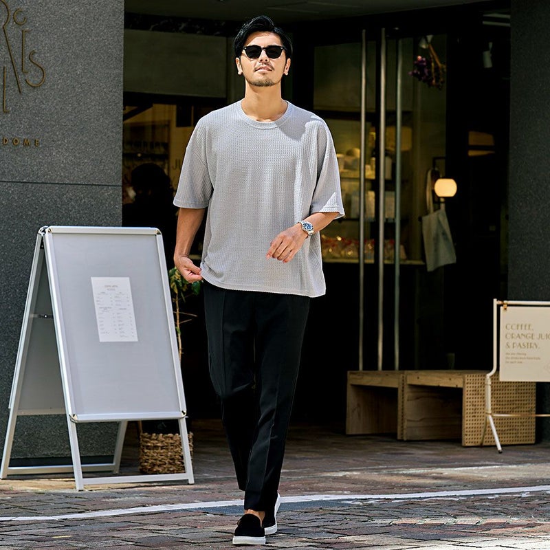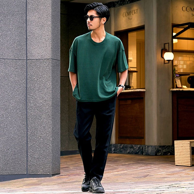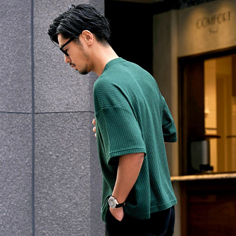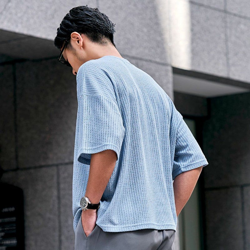 凹凸感のあるワッフル調の生地を使用し、肌に触れる面積が少ないためべたつかず、さらりとした着心地が魅力。