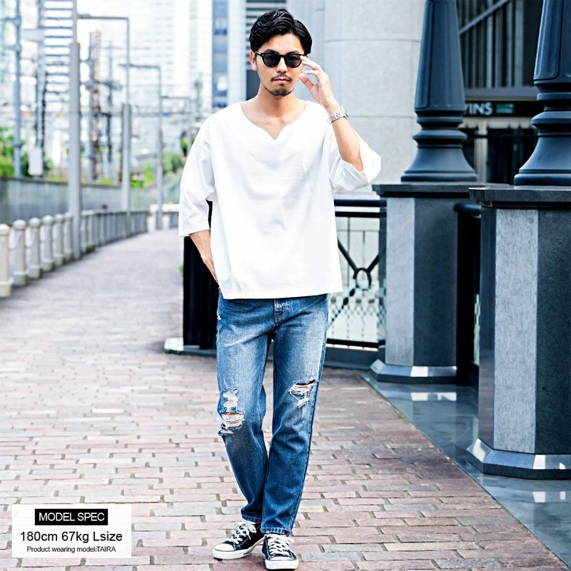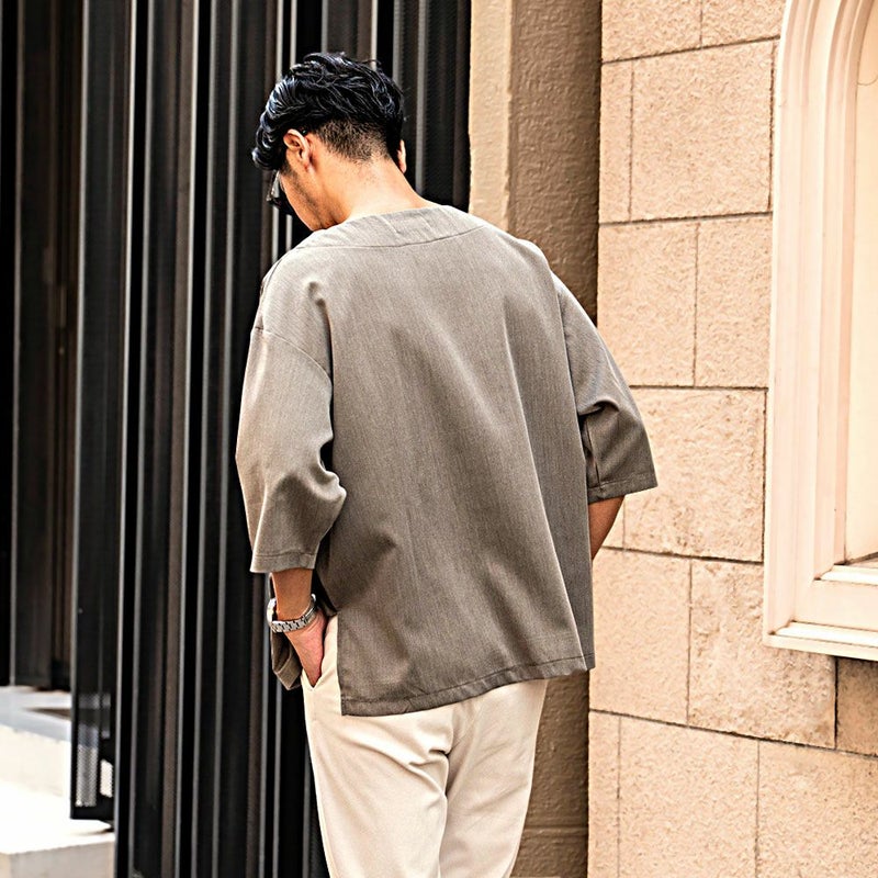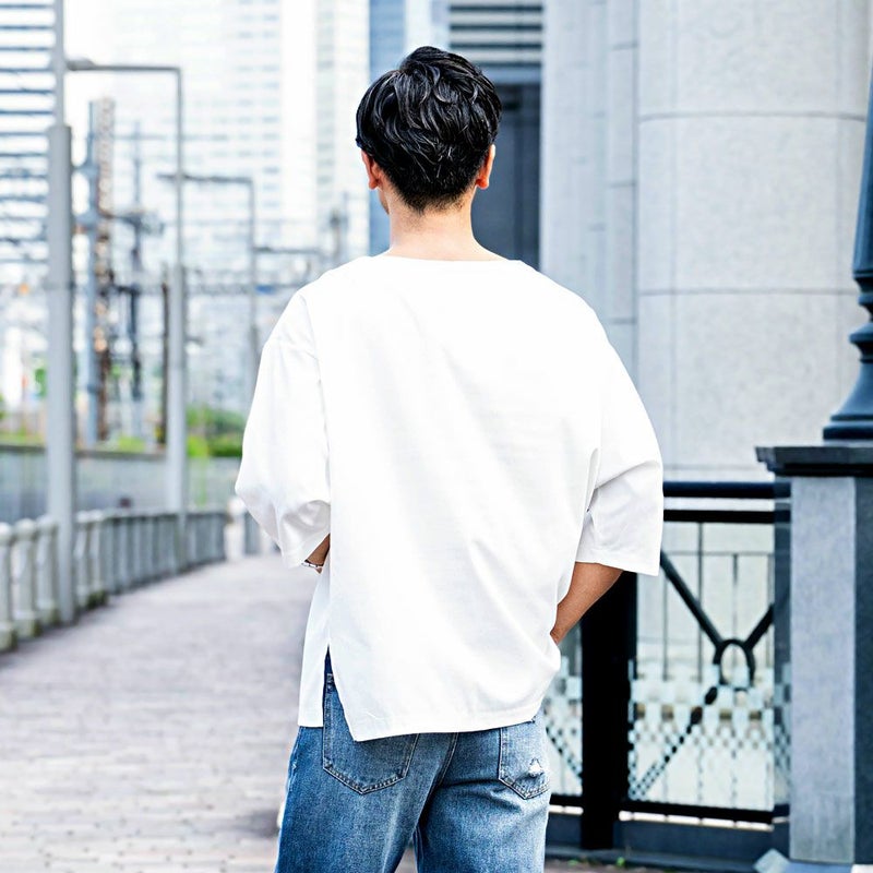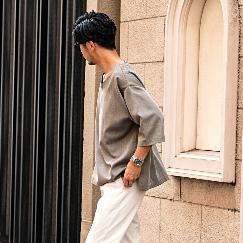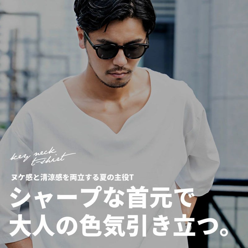 シンプルだけど洒落感があり、着るだけで“今っぽさ”が手に入る大人のためのキーネックTシャツ。