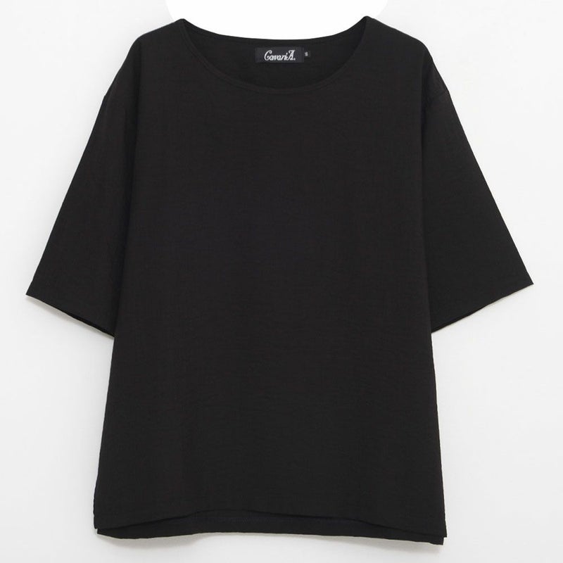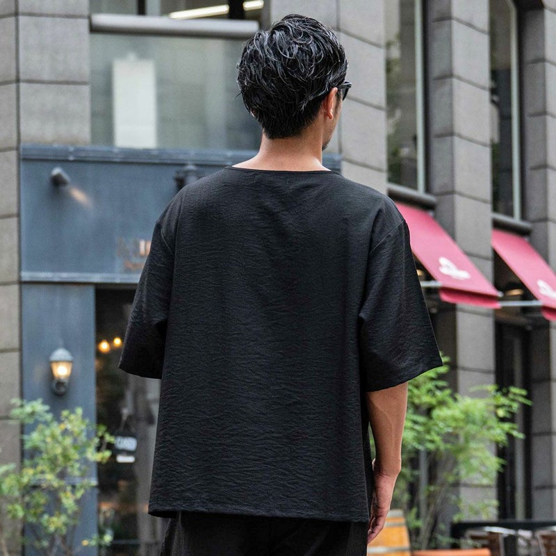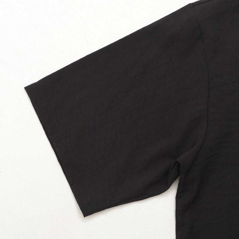 軽やかな素材感とルーズなシルエットが魅力の、布帛半袖Tシャツ。