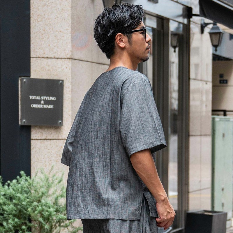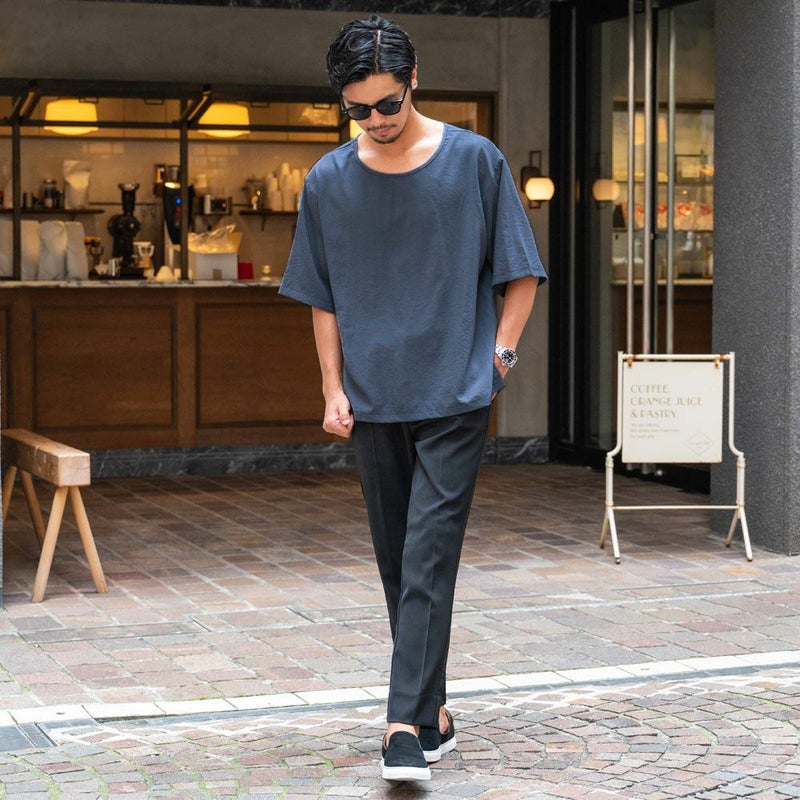 やや広めのネックラインやサイドスリットを取り入れたデザインが、抜け感のあるスタイリングを演出します。