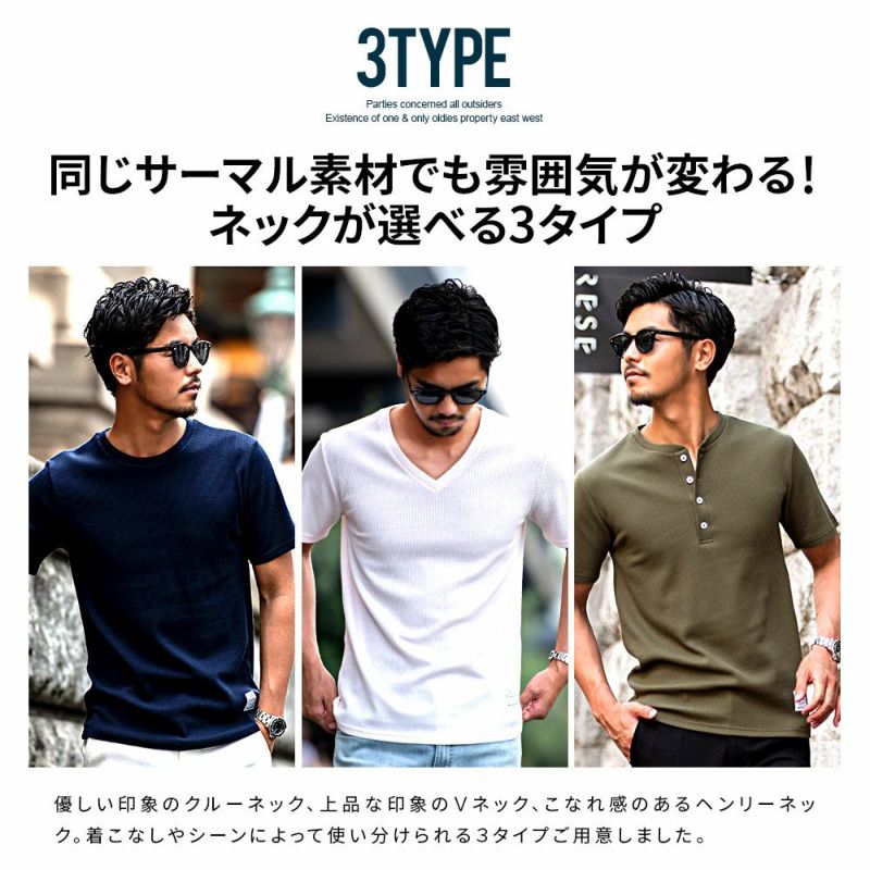 襟元は「クルーネック・Vネック・ヘンリーネック」の3タイプをご用意。