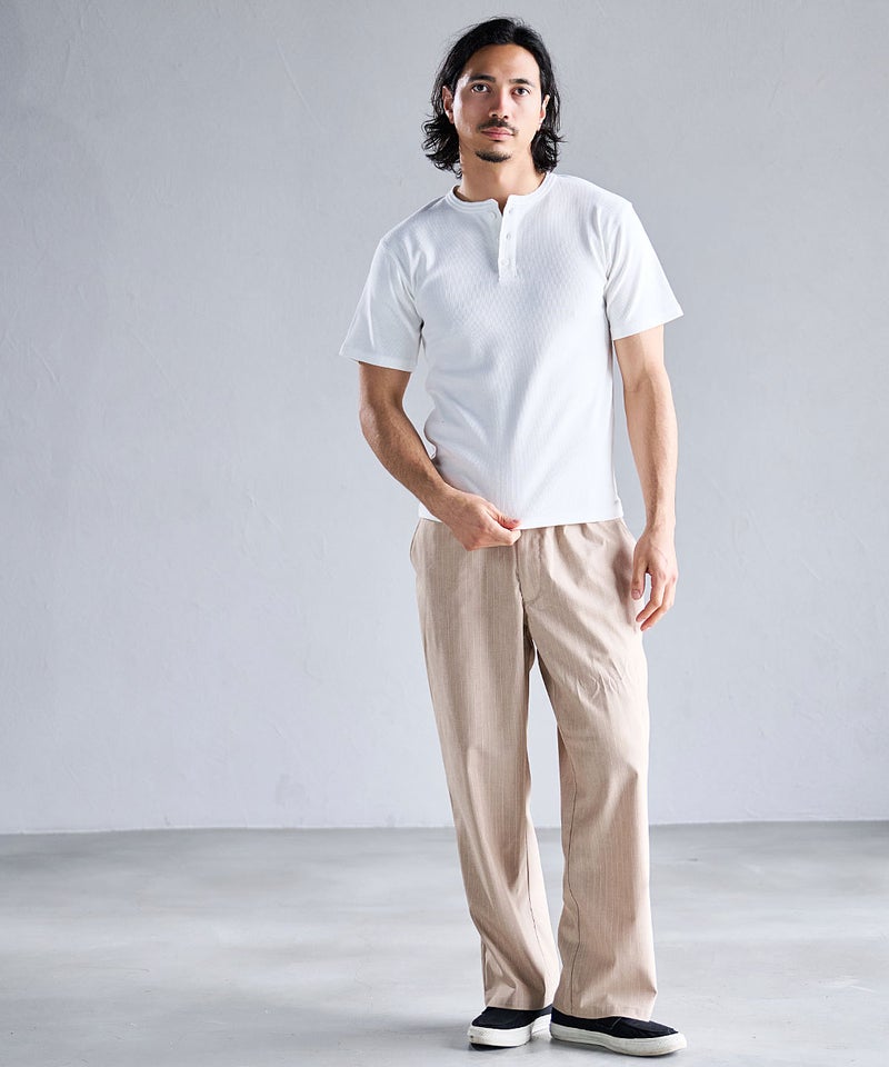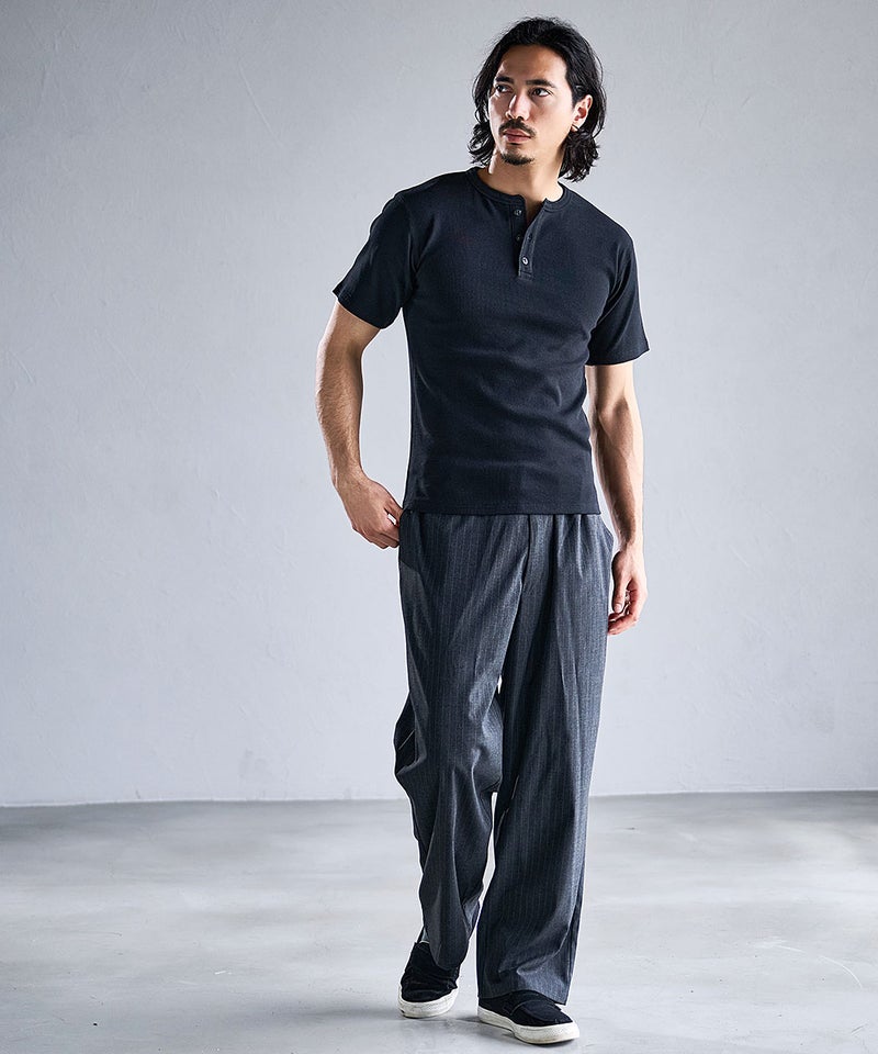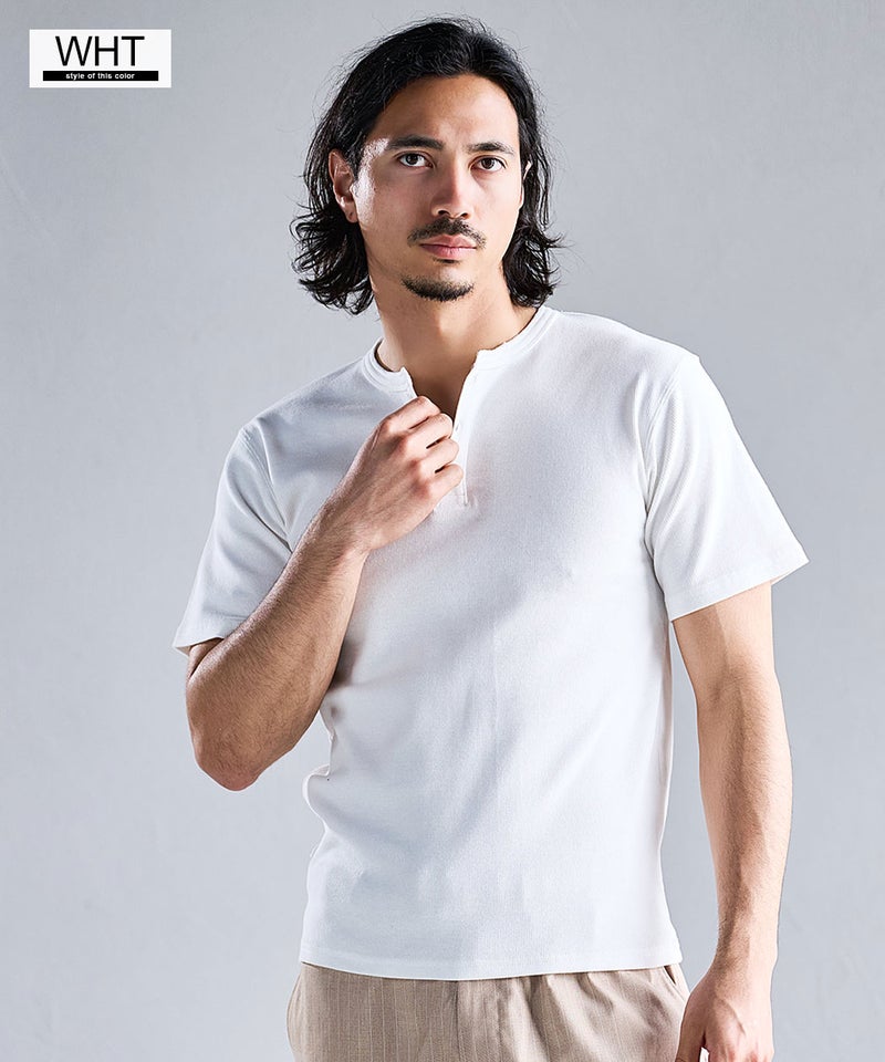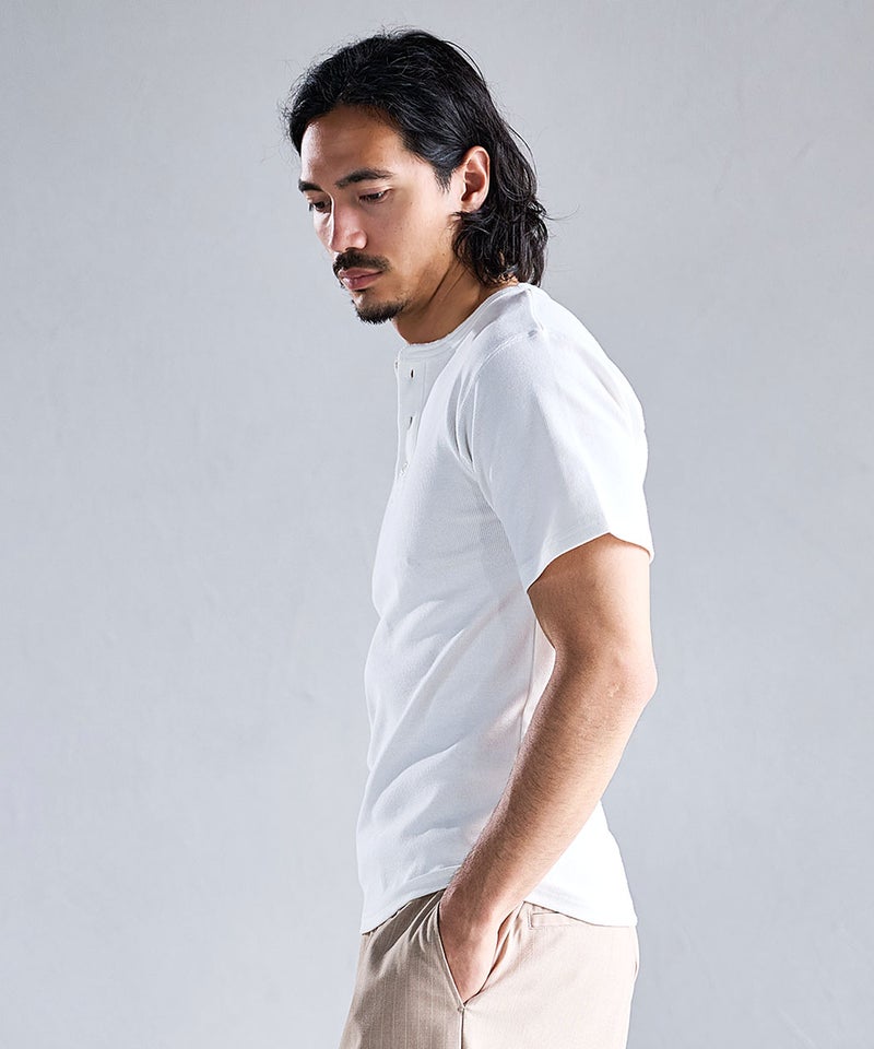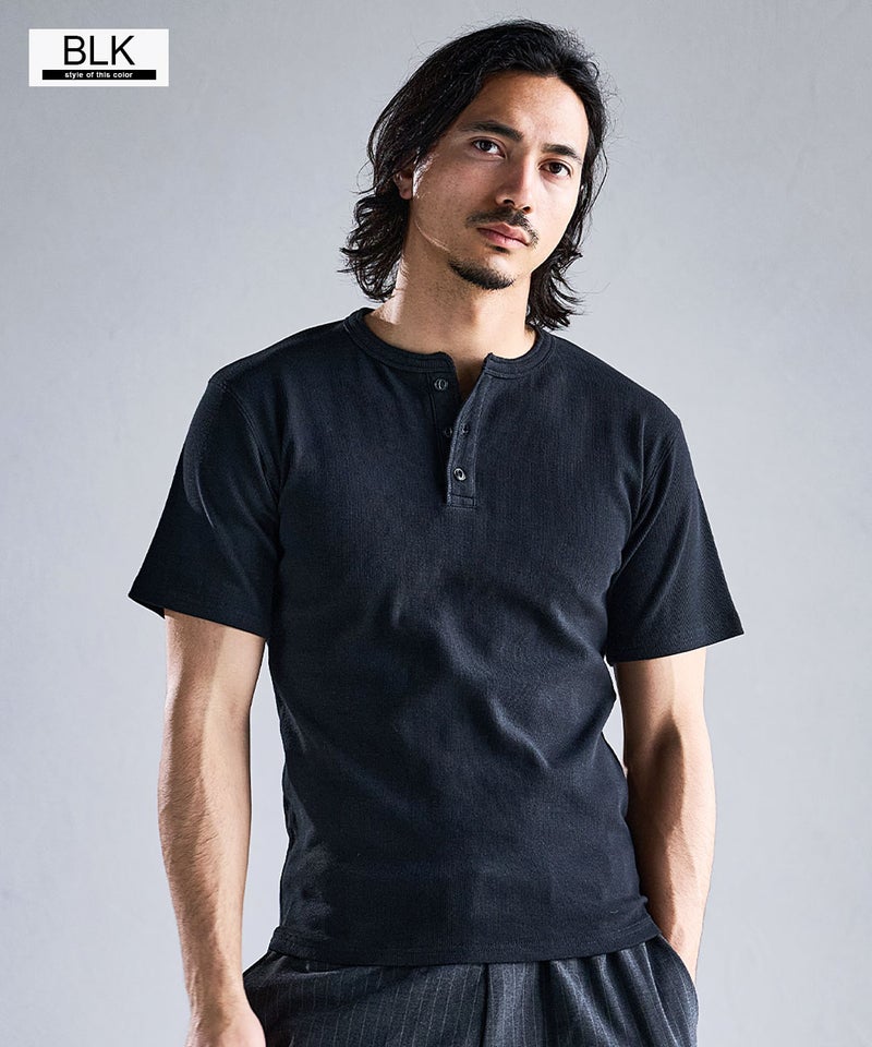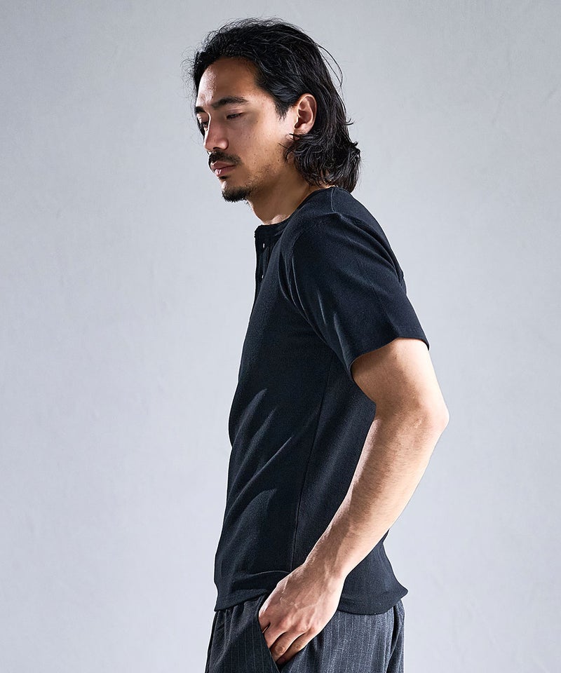 首元はヘンリーネックデザインを採用し、アクセントをプラス。