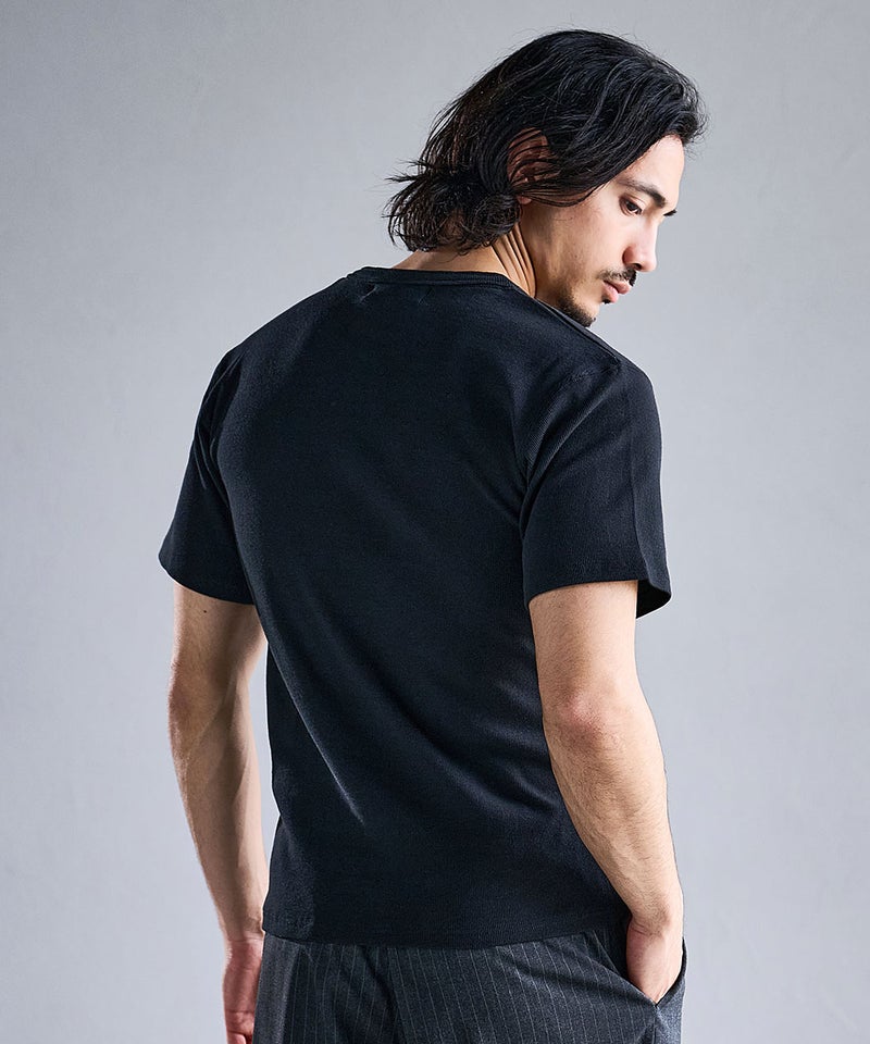 身体にフィットするスパンリブ素材を使用した半袖Tシャツ。