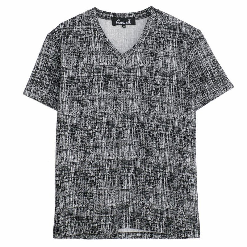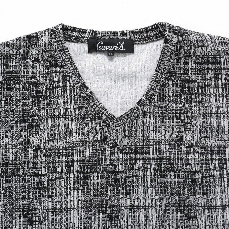 暑い日でも涼しくおしゃれに!シンプルで着心地抜群の半袖Tシャツ。 【SALE/セール】CavariA(キャバリア)モザイクチェック柄Vネック半袖Tシャツ/全3色