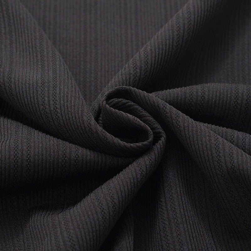 生地に凹凸を持たせ、大小の異なるストライプ柄が特徴のランダムテレコ素材を採用。