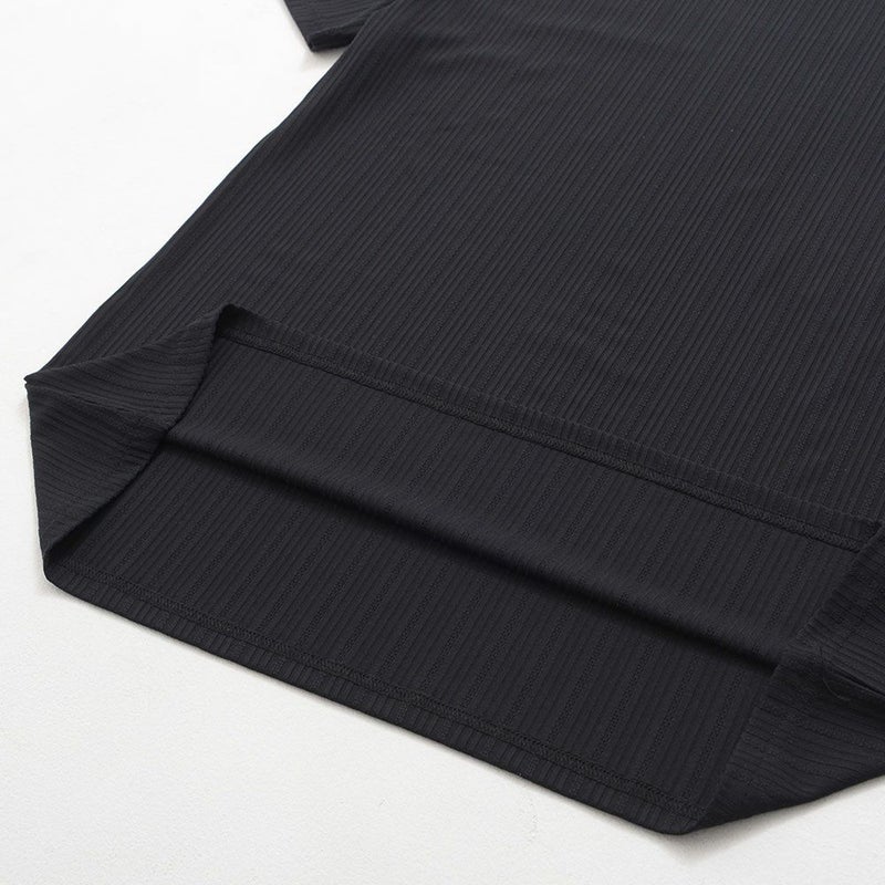 伸縮性のある素材なのでタイトめなサイズ感でもストレスのない着心地を実現。