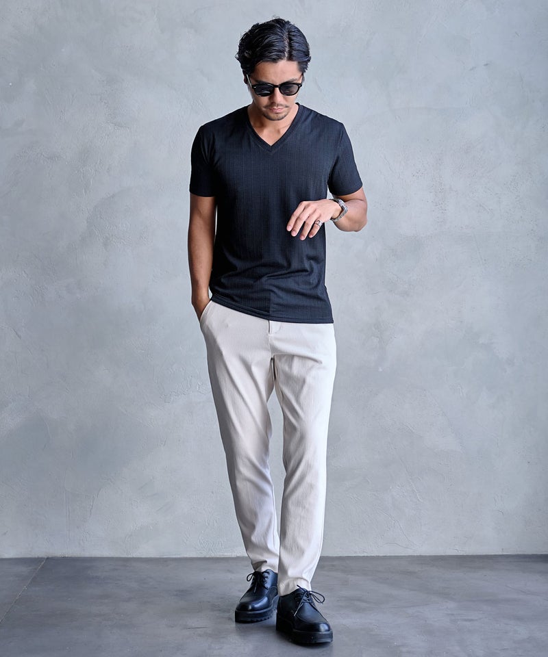 BITTER STORE(ビターストア)にCavariA【キャバリア】ストレッチジャガード半袖VネックTEEが入荷しました。