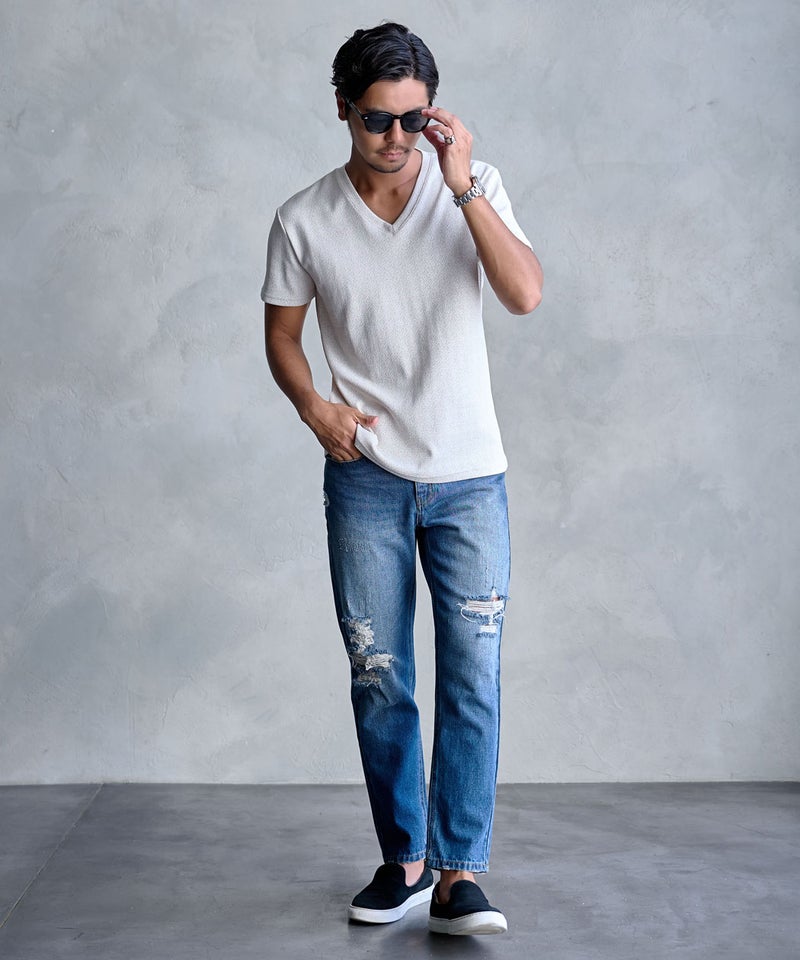 BITTER STORE(ビターストア)にCavariA【キャバリア】ラフヘリンボーン半袖VネックTEEが入荷しました。