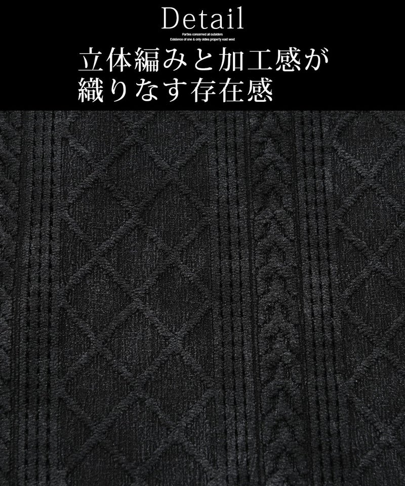 立体的な編み柄と加工感によって、シンプルなカラーでも奥行きのある見た目に。